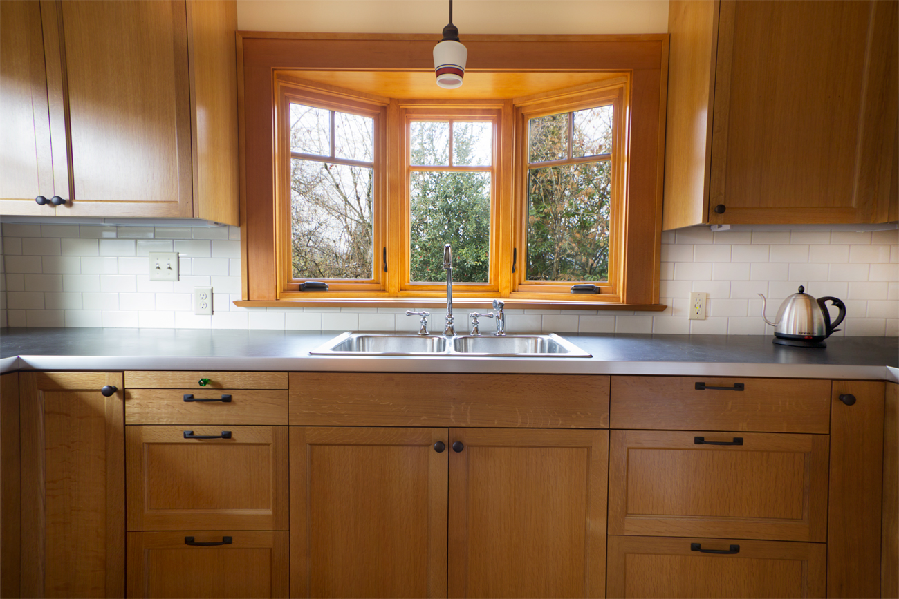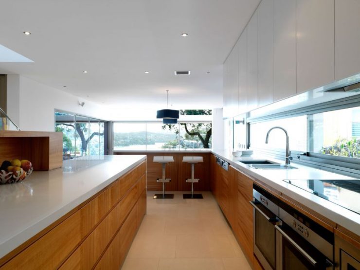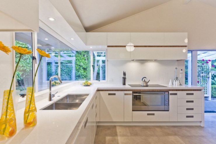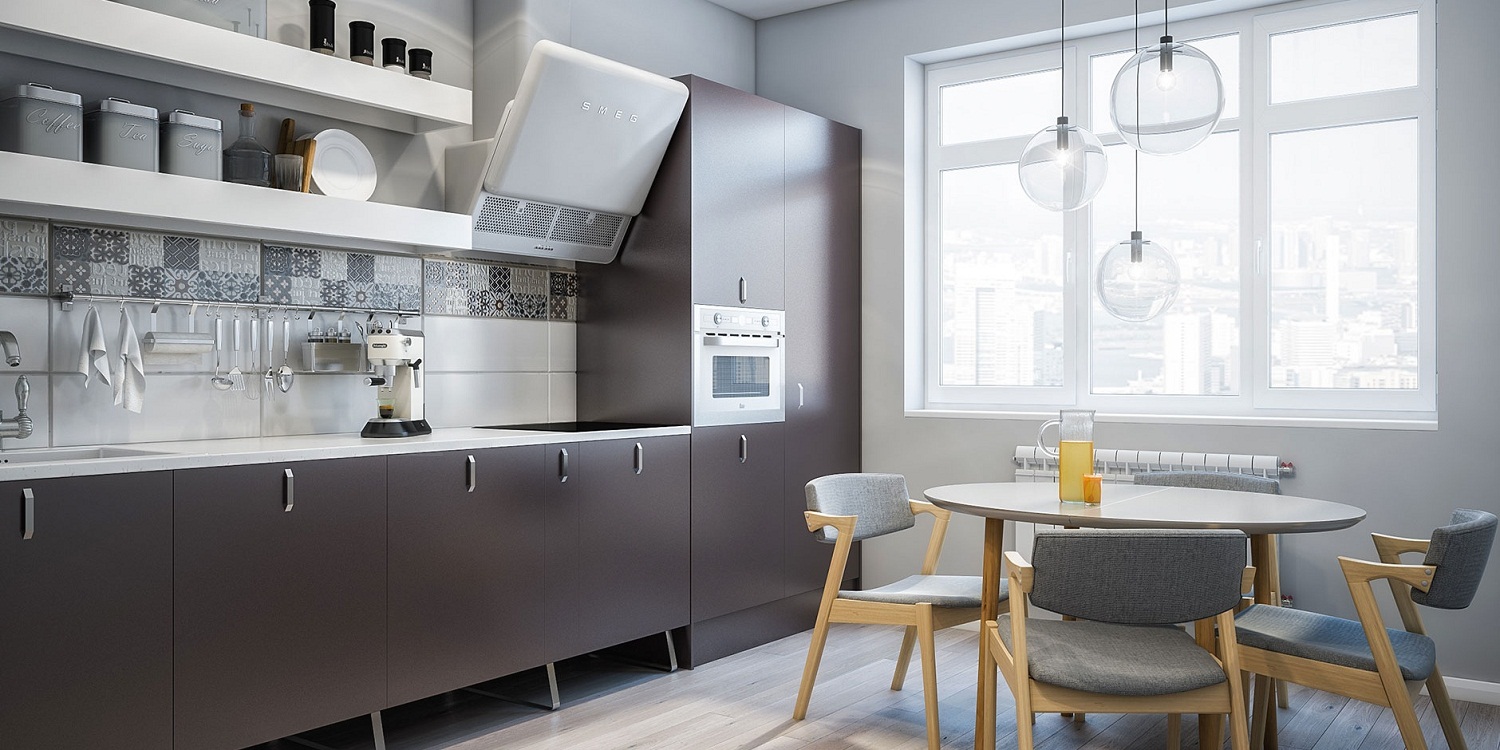 There are drawbacks to the location of the working area at the window, but they are neutralized by a huge number of advantages. Enjoy the beautiful views and prepare culinary masterpieces for your loved ones.