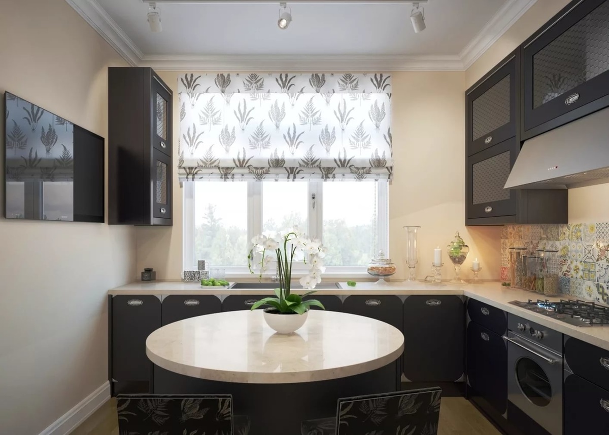- Rolled curtains for the kitchen - the best option. They do not take up much space, and at the same time protect from a lot of sunlight.