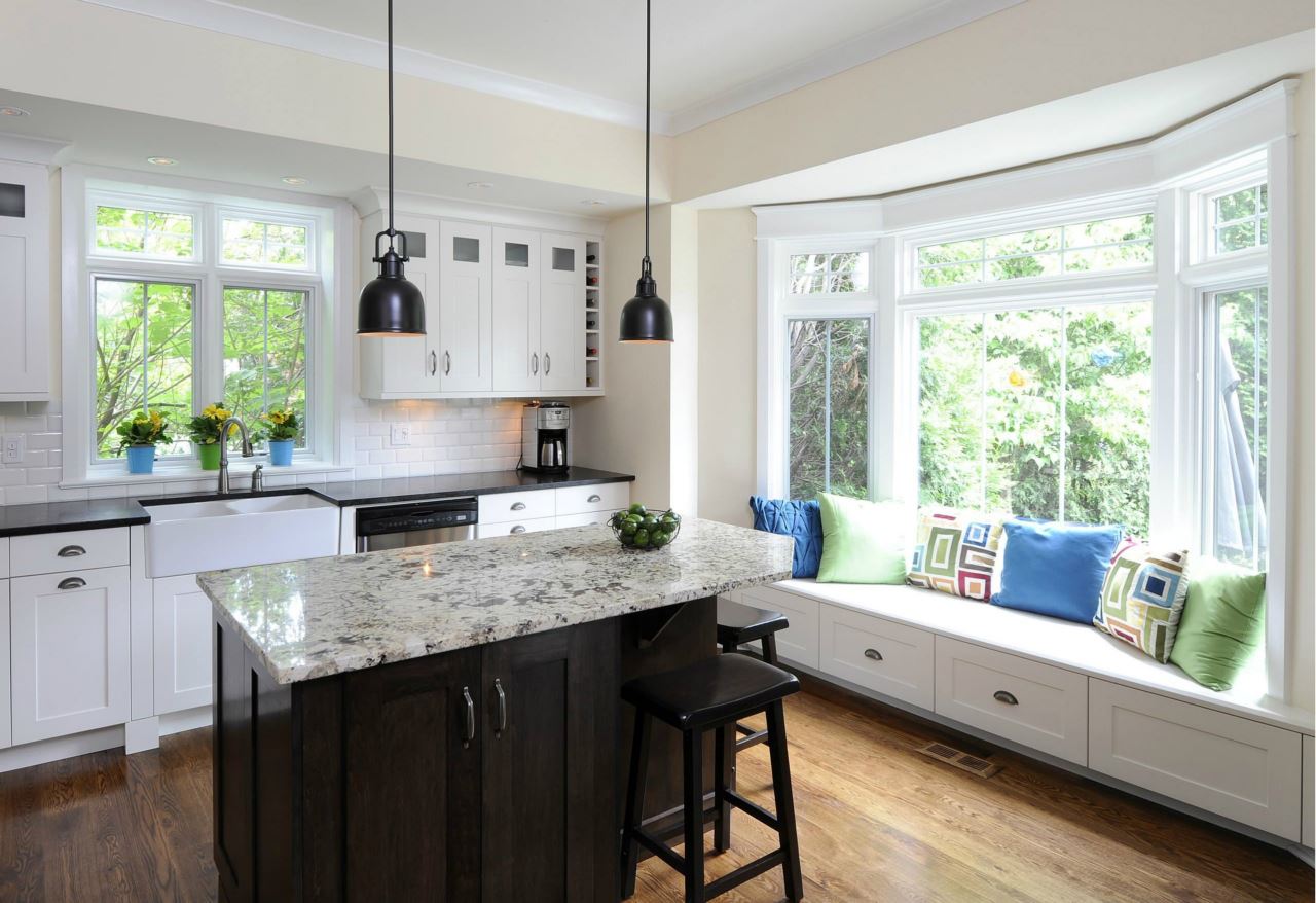In spacious kitchens-living rooms, as a rule, one or several windows are reserved for a recreation area.