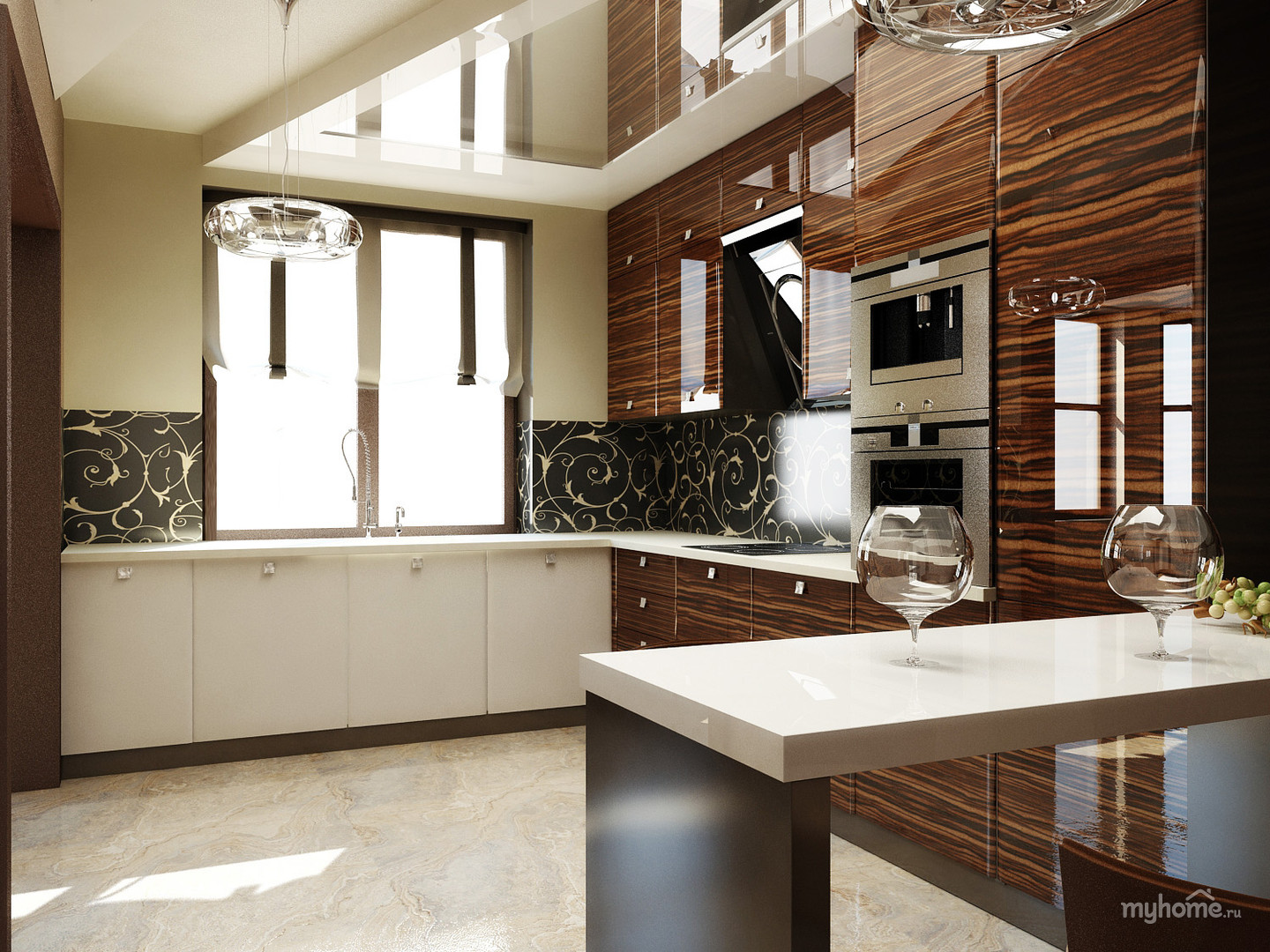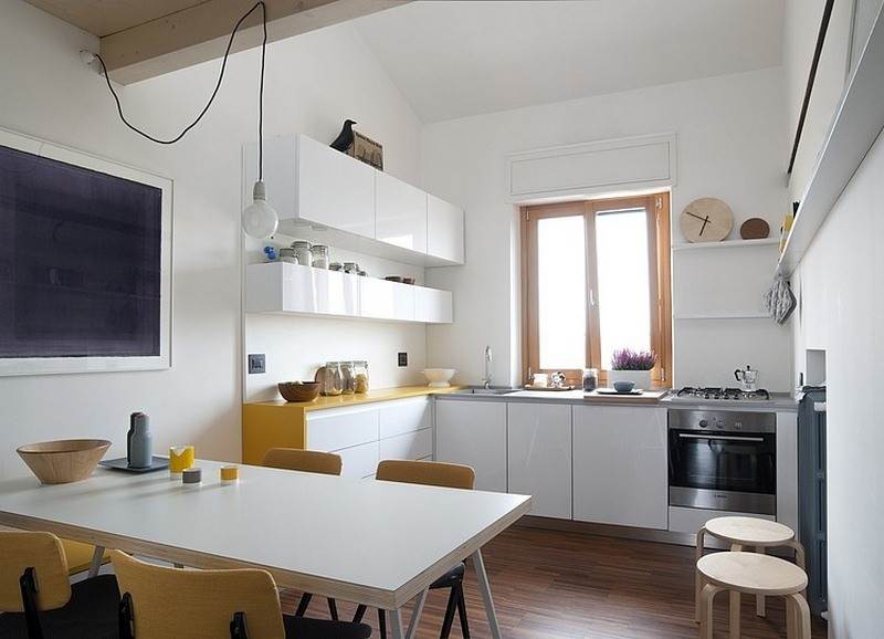 Properly played space is the key to making the kitchen spacious and the interior practical and stylish.