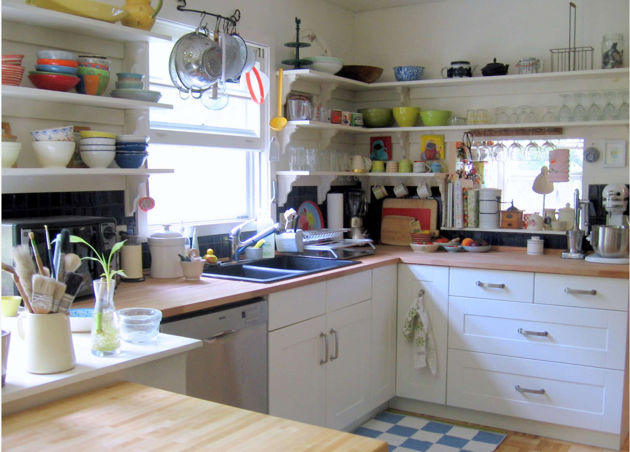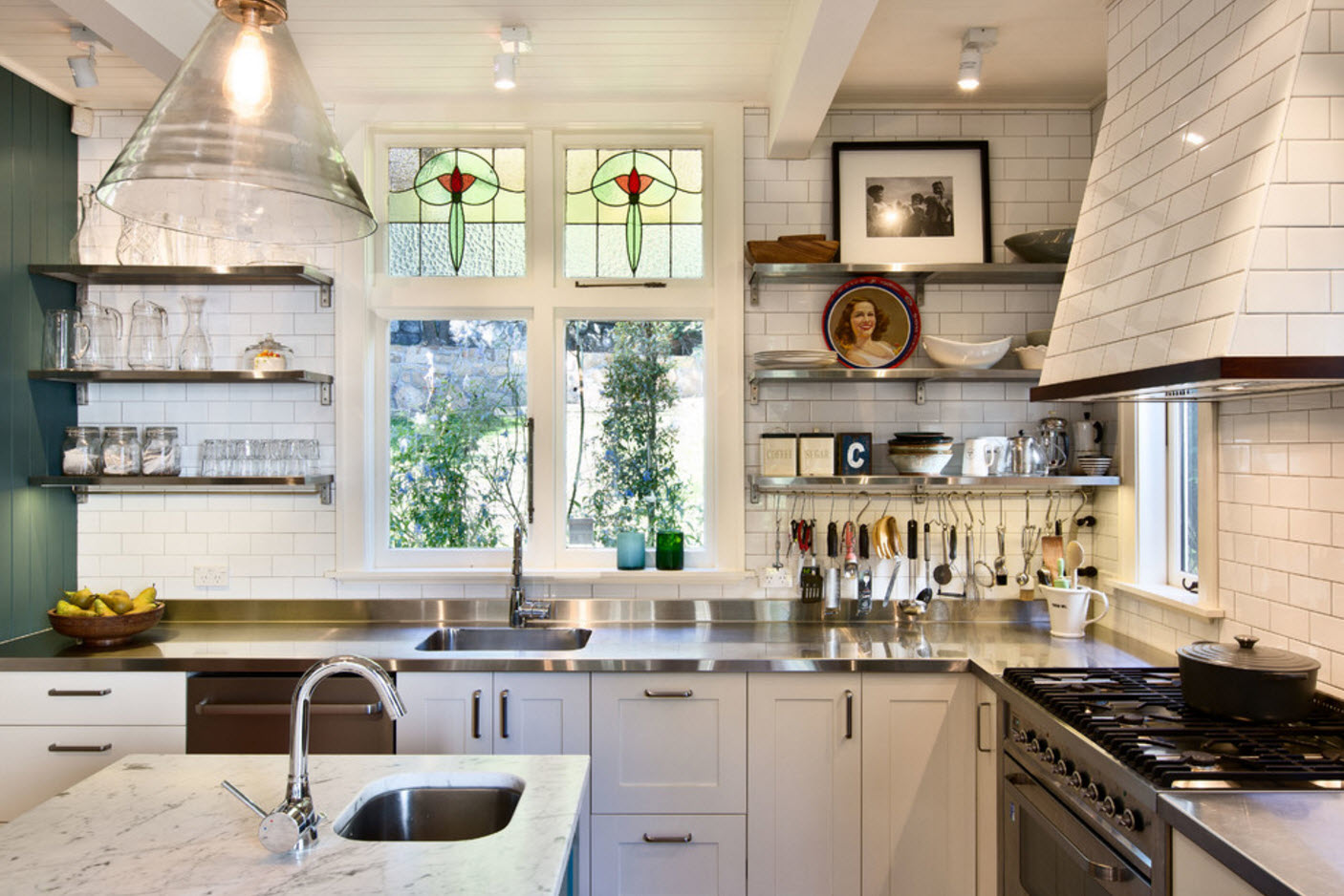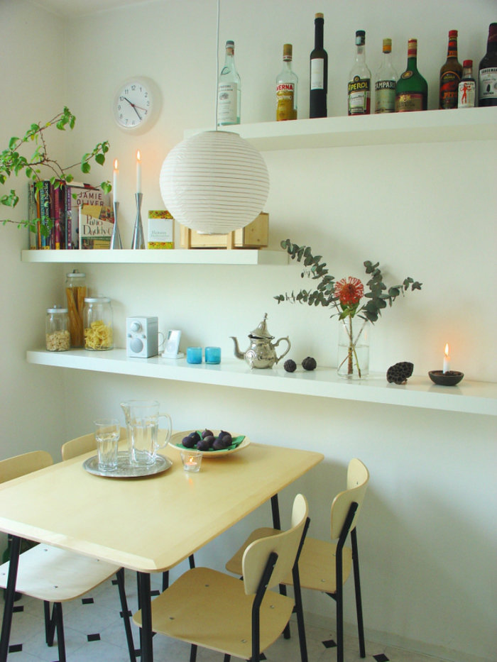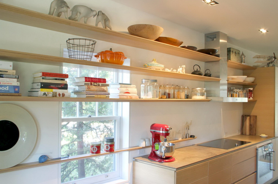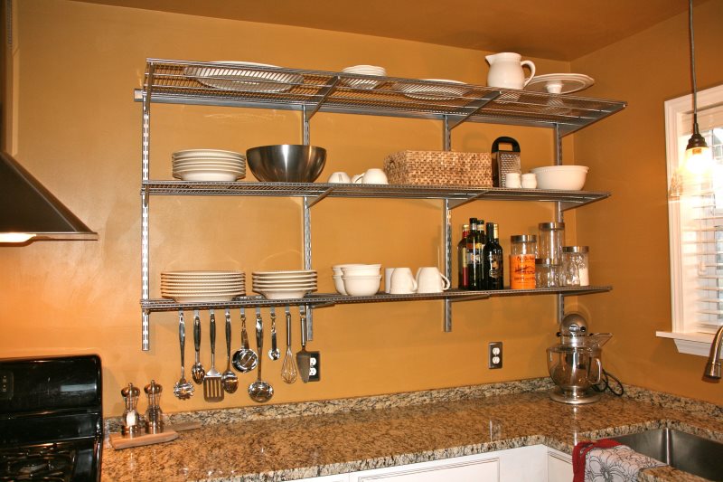Shelves will definitely not like those housewives who prefer not to flaunt kitchen utensils