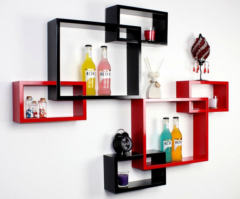 Even the simplest shelves can be made more interesting by finishing in different colors.