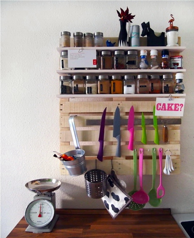 Having hung on this design pans, potholders, towels, you can take them at any time.