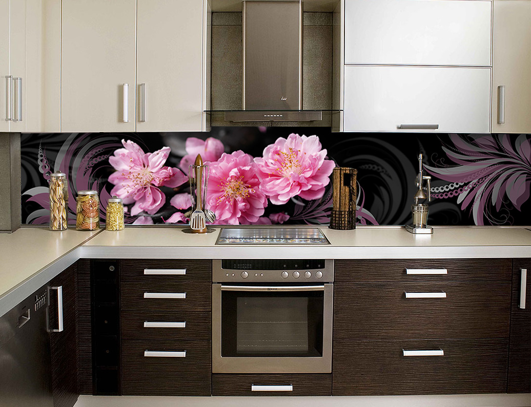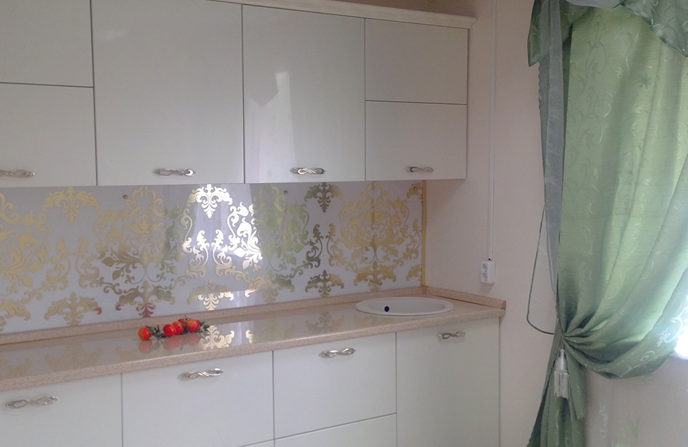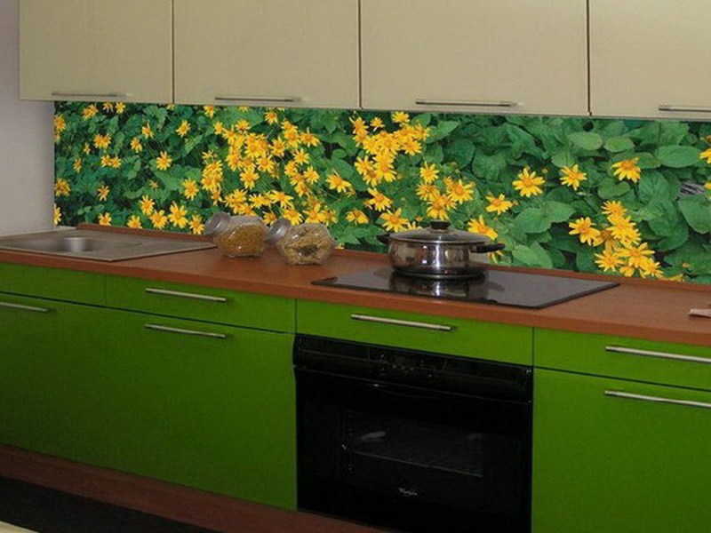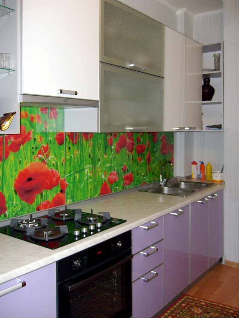 - hot oil and sparks from an open flame can leave marks, the apron kitchen panel can be hopelessly damaged (it is recommended to expose a metal shield or a cover from the gas stove).
