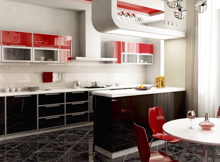 - If you need to visually enlarge the kitchen, it is recommended to choose light MDF panels with a glossy effect. The space of the apron can be slightly increased by raising the bottom line of the furniture by 10-20 cm.