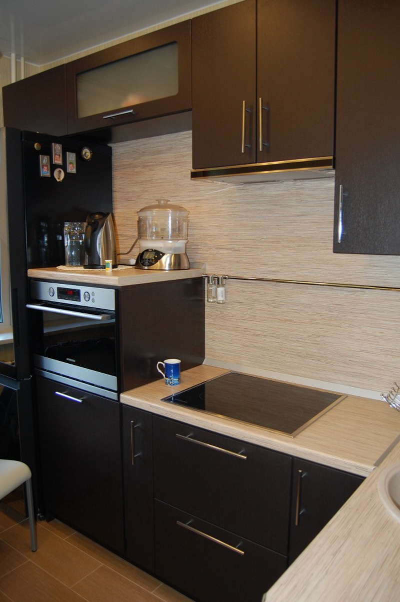 - neutral background and pastel colors are more suitable for walls, and it is better to trim the kitchen apron according to the principle of contrast.