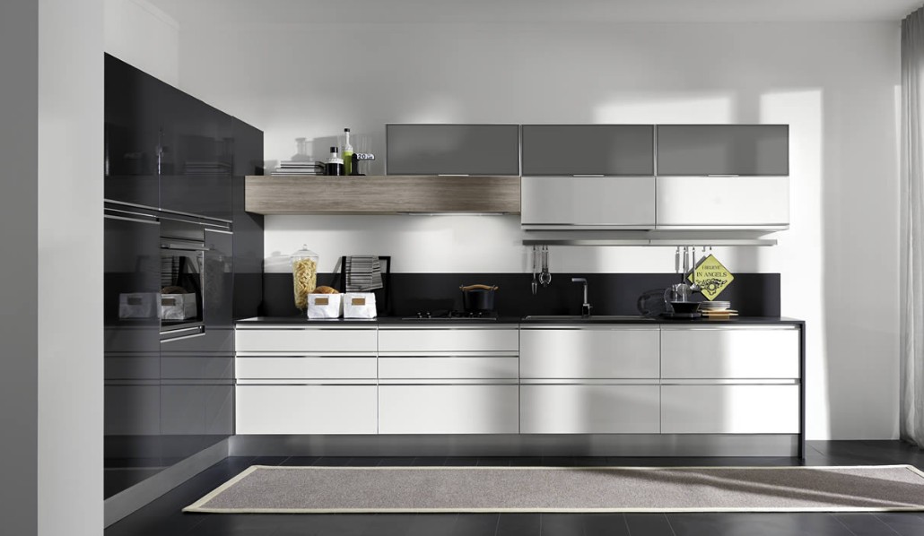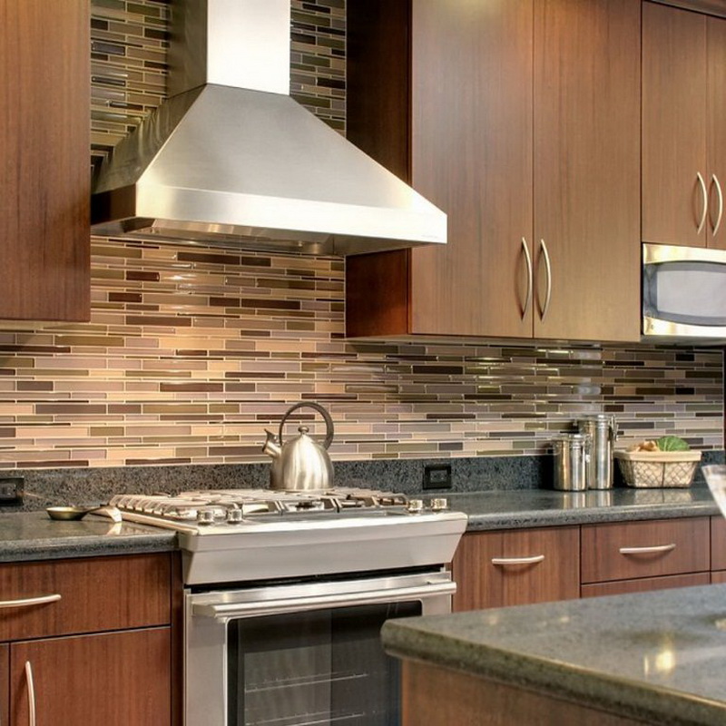 - Horizontal geometric pattern, it will visually expand the narrow kitchen.