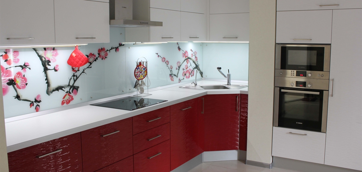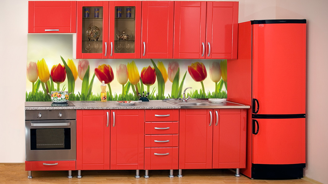 Useful advice! When dismantling the old tile cladding and laying the kitchen panels on the apron, usually the hanging cabinets are removed. If you want to show the decor at the working surface in all its glory, it is recommended to correct the bottom line of the hinged shelves and cabinets upon completion of installation.