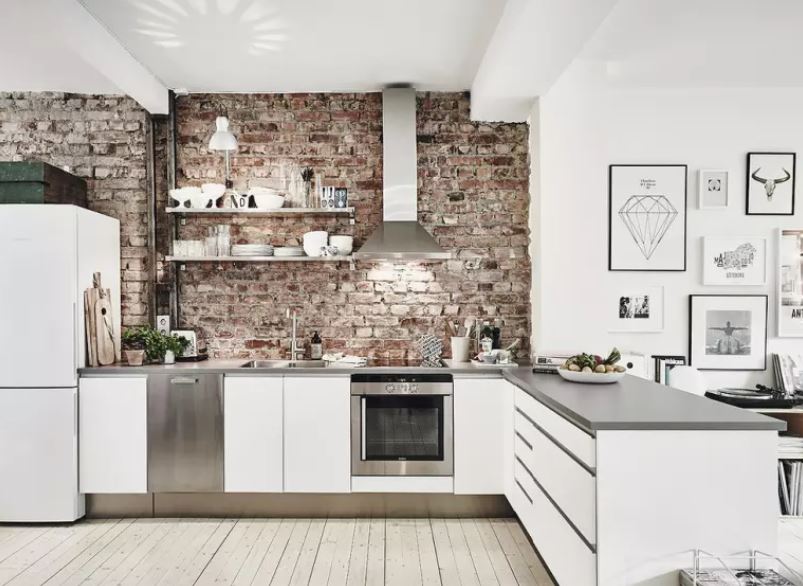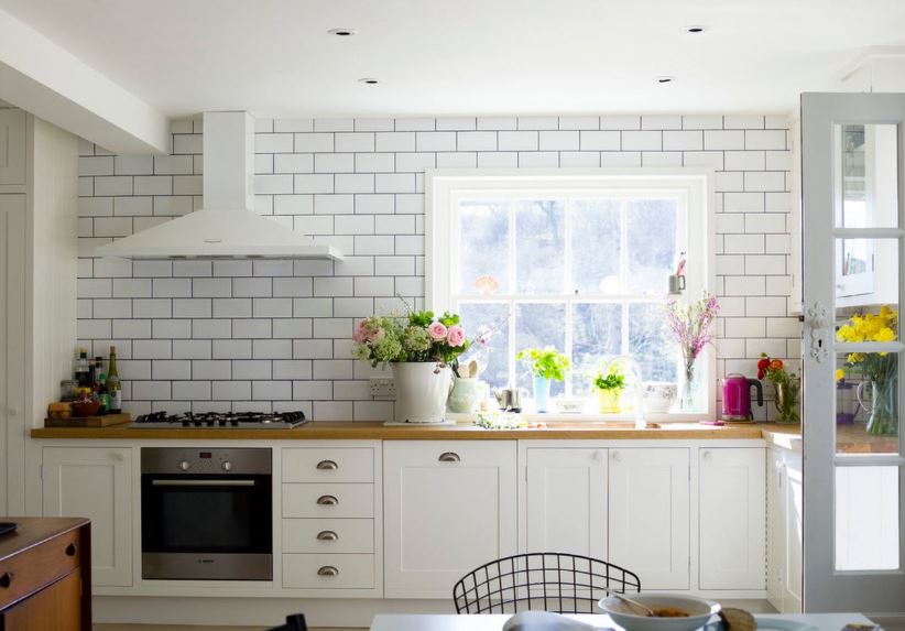 What could be the design of a white kitchen in the interior