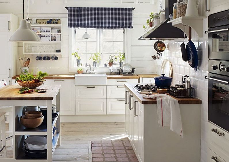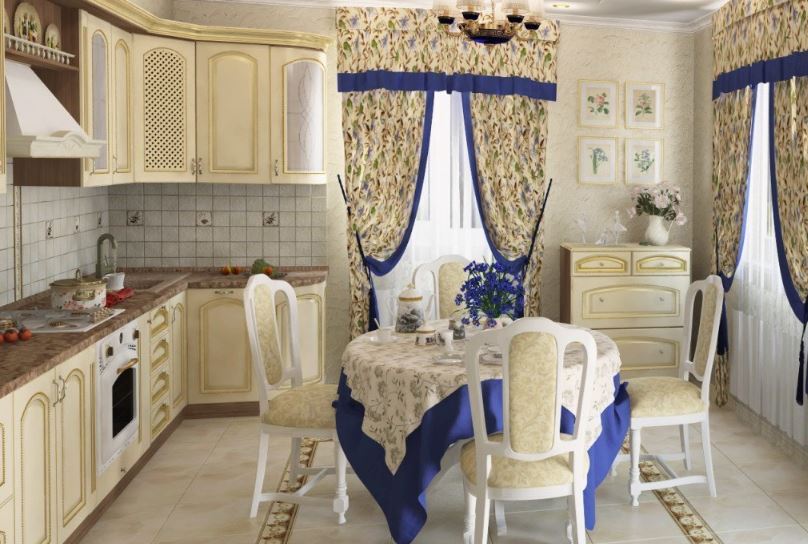 The choice of curtains is determined by the style of the kitchen