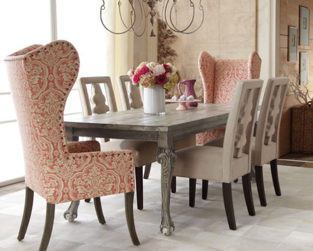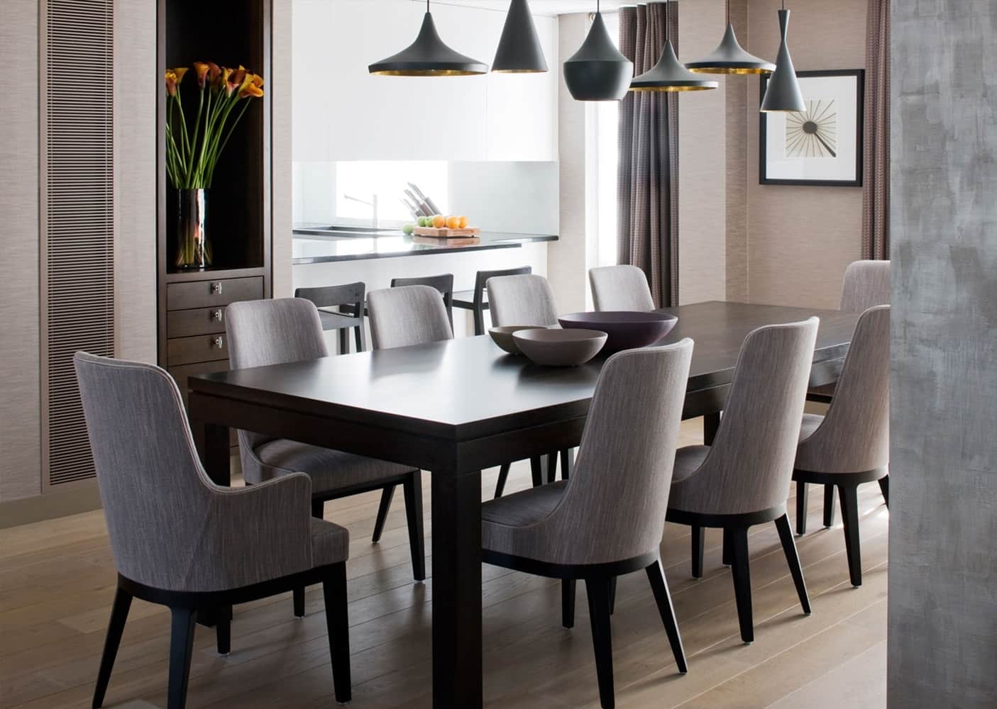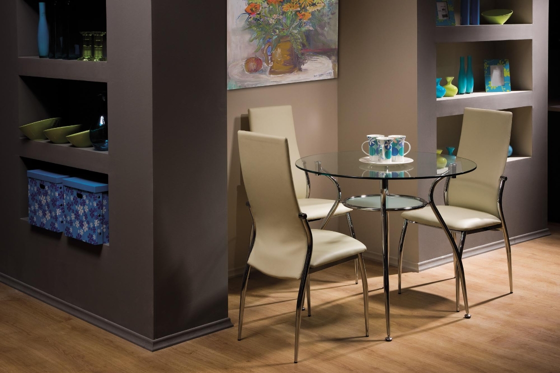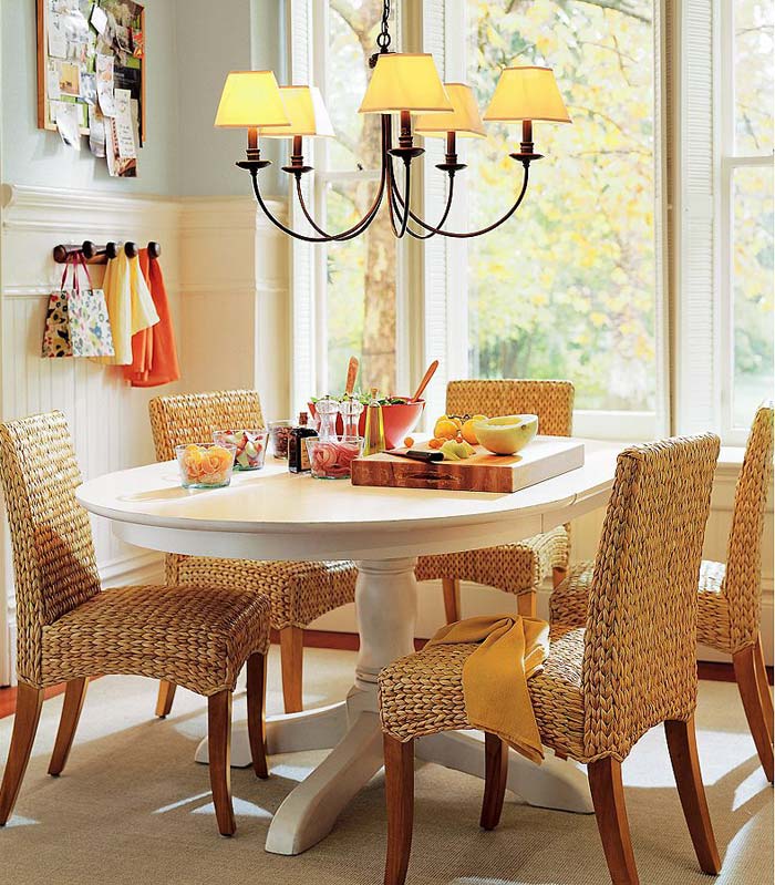 Chairs usually complete the round dining table. They combine comfortable soft armrests and a back.