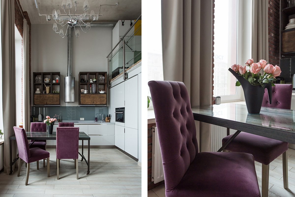 Small armchairs diversify the most uncomplicated design of the kitchen, give the mood.