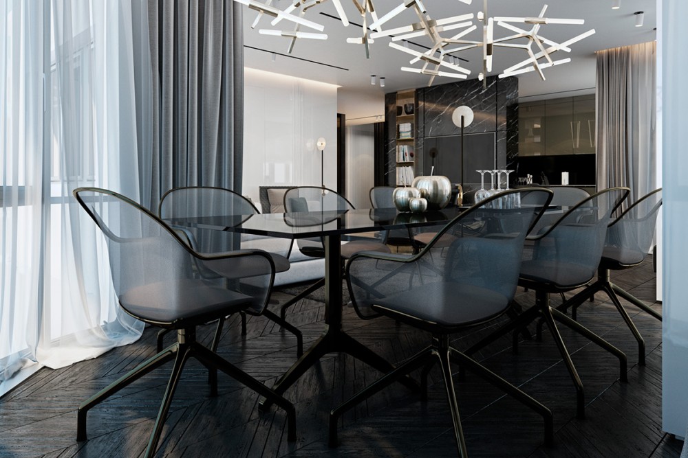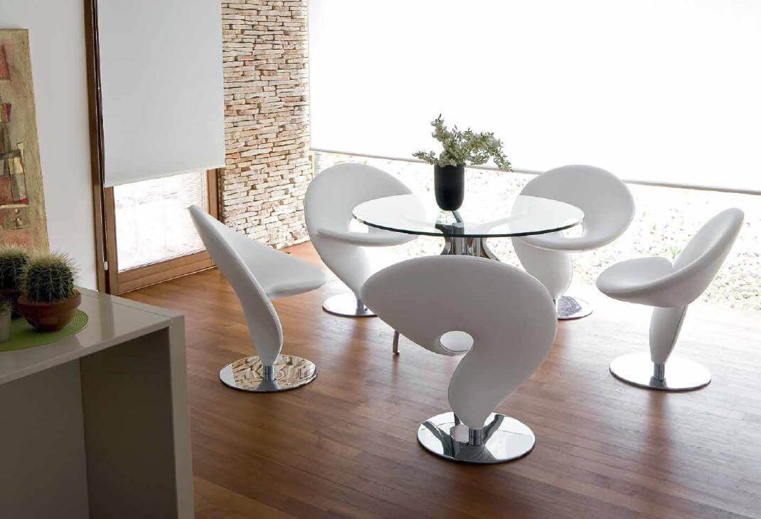 Another good option due to the fact that in apartment buildings most often the kitchens are very small, and in a limited space you need a chair from which it would be convenient to get up and sit down. This type of convenience provides, and often the chairs are created swivel to give the design even more convenience and comfort.