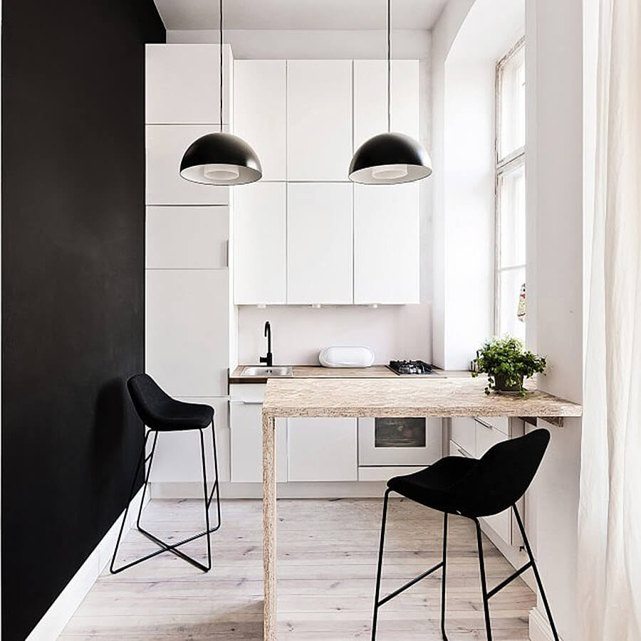 The thoughtful simplicity of minimalism is perfect for designing a small or narrow kitchen.