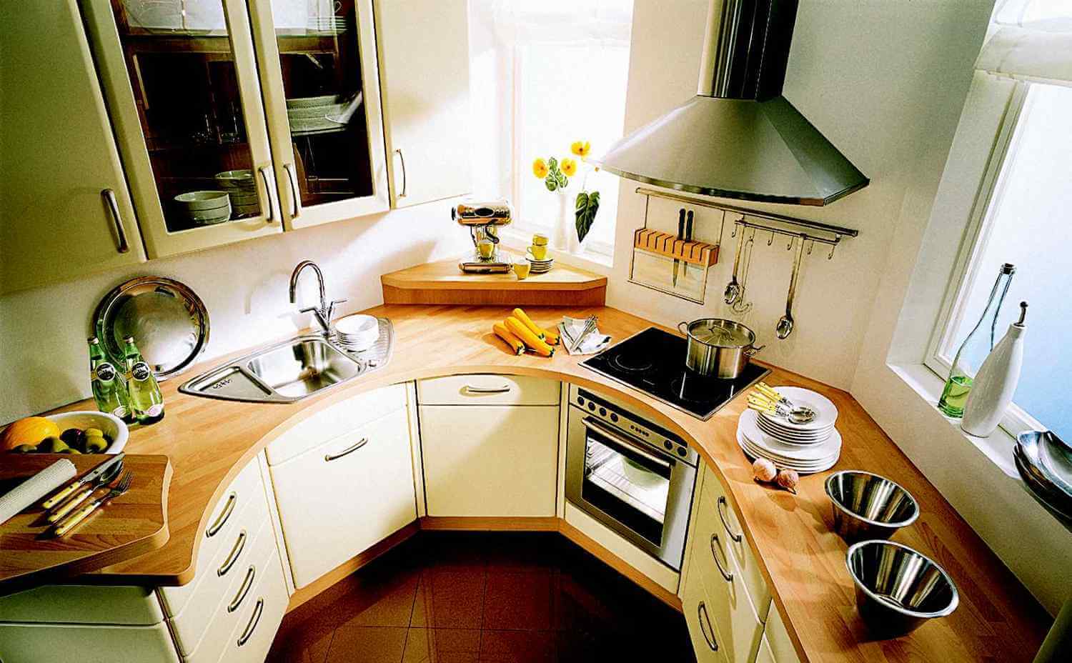 In order to make the corner kitchen for a small kitchen convenient to use, it is necessary to properly position the sink. It is important to remember that it is the sink, refrigerator and stove that form the specific working area - therefore, they must be placed on the tops of the triangle that is drawn between the three objects of household appliances.