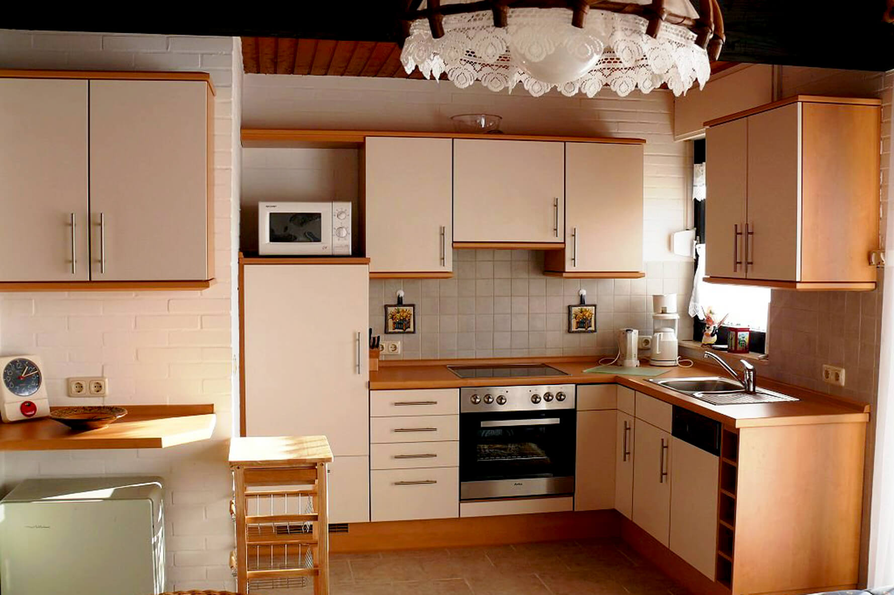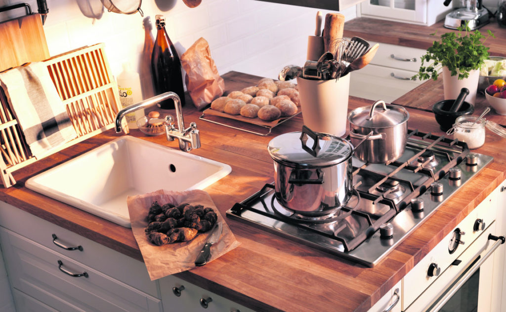 A gas stove or hob is built into the kitchen. It is important to consider that between the sink and the stove there must be at least 1 meter of free working space.