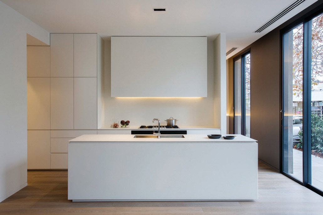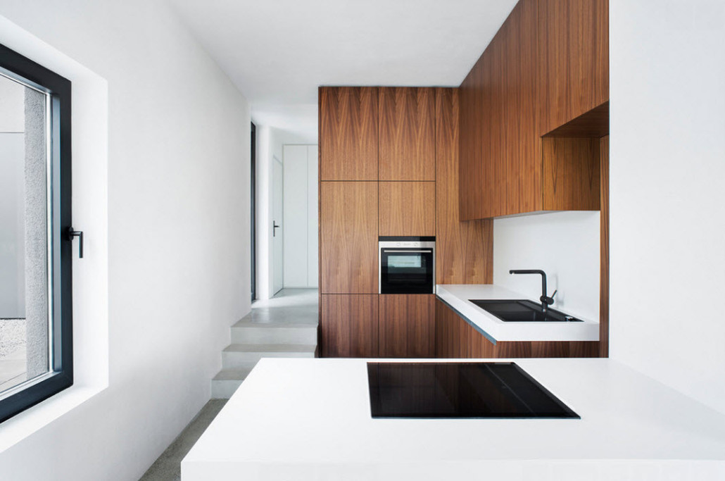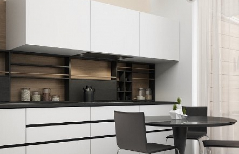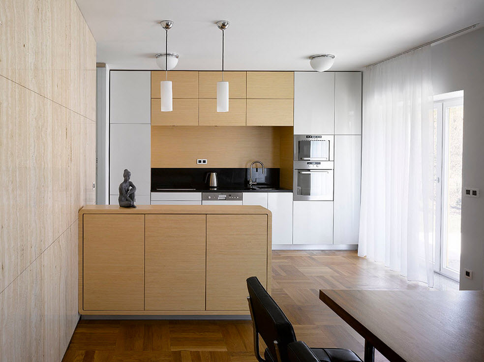 Wood will compensate for minimalism and add elegance to the kitchen interior.