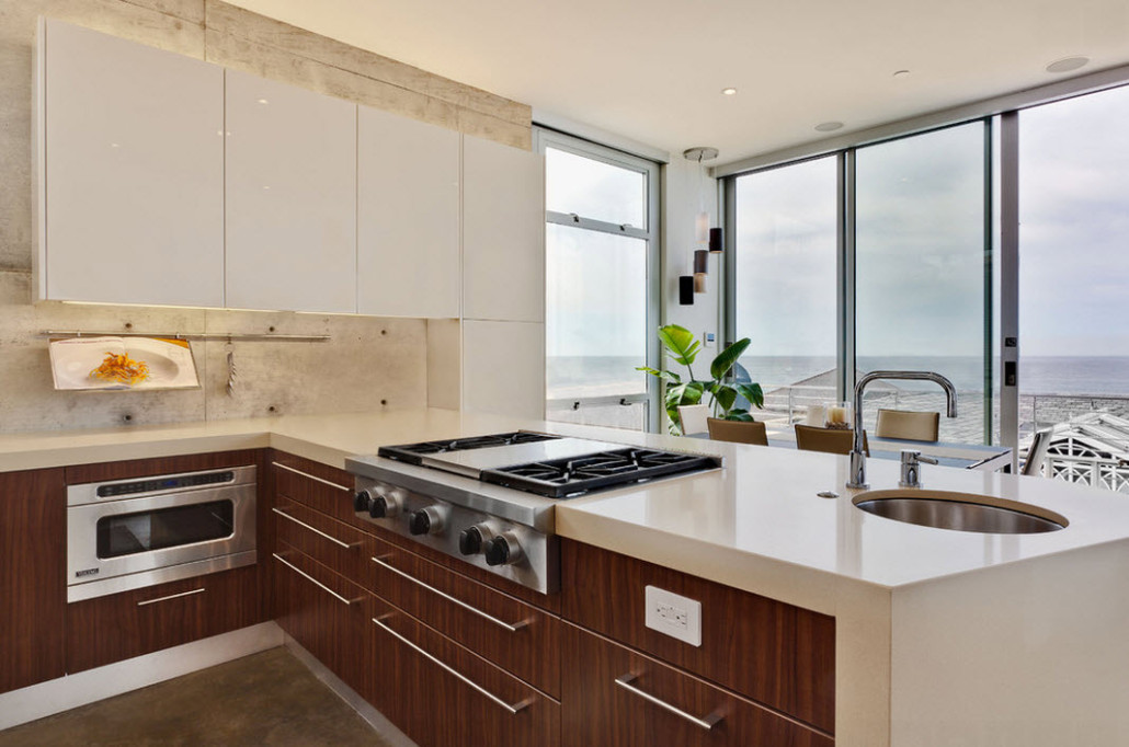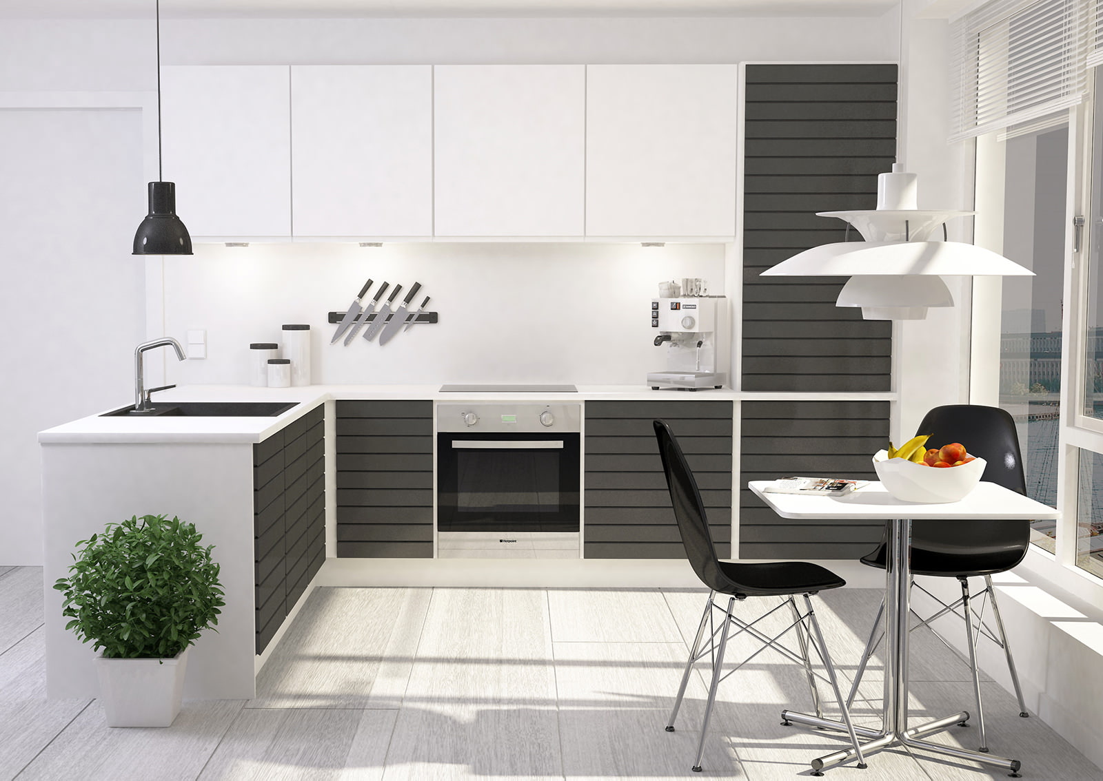 A common design in a small area is an angular modern kitchen, more precisely L-shaped. In a limited space, it is worth considering the compatibility of the main cooking areas, cold and hot. This is necessary so that the equipment does not break, lasts as long as possible.