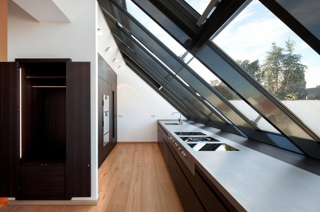 The linear arrangement of the headset will correct the shortcomings of a small area reserved for the kitchen space