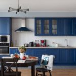 - Gray with blue, blue. This combination of colors in the interior calms, restrains negative impulses. Hot-tempered people, whose kitchen passions often run high, can cool their emotions with this decision. A gray kitchen with blue and blue accents will never be boring.