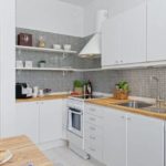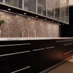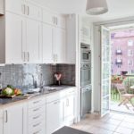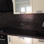 - Black color will also be interesting as an apron material. It can contrast with the light furniture of the kitchen, and can support the interior of the loft or high-tech style.