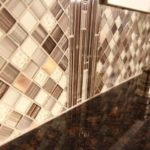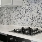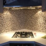Mother of pearl is made from shells and is quite expensive. On the apron in the kitchen, she looks stylish, shimmers with warm colors and gives a feeling of comfort and joy.