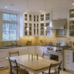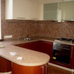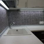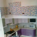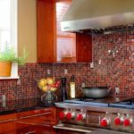 An apron in the kitchen is an important element, it can slightly shade the beauty of the kitchen set, and can become a bright accent in the appearance of the kitchen. While working on the kitchen design project, it is worthwhile to devote enough time to the apron. There is a large list of materials used to decorate the space above the work surface. Among the leaders is a mosaic tile for the kitchen on the apron. It looks advantageous on the wall, especially with additional illumination, in the rays of light it reveals in all its glory.