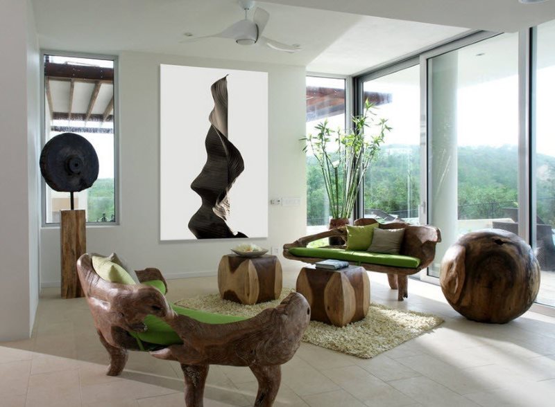 As a basis, you can take a loft with its layout, decoration of walls and furniture. It remains to add individual elements of eco-style in the form of harmoniously selected decorations