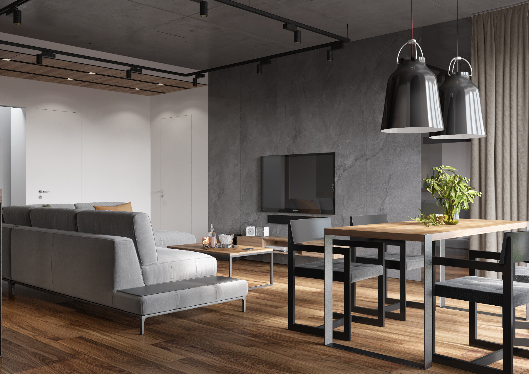 Finishing materials for the kitchen, combined with the living room, should have a number of requirements that will provide them with the necessary durability. Not all materials used for eco-lofts are suitable for the kitchen and living room - these are not just those rooms where a large number of people of different ages gather daily, but also a place where they cook and eat. For this reason, the finish should not only be environmentally friendly and consistent with the overall style, but also meet a number of requirements.