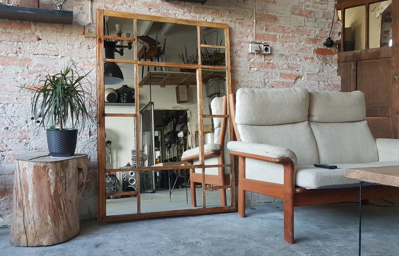 A widespread problem: even after removing partitions and walls where possible, there is still little space for the chosen style. A loft requires the largest possible amount of free space, but in a standard apartment with small ceilings, even after removing all possible partitions in standard apartments, there is not enough space. We have to look for tricks that will make the room more at least visually. One of such tricks is large mirrors that occupy part of the wall or cabinet, and create the impression of additional space.