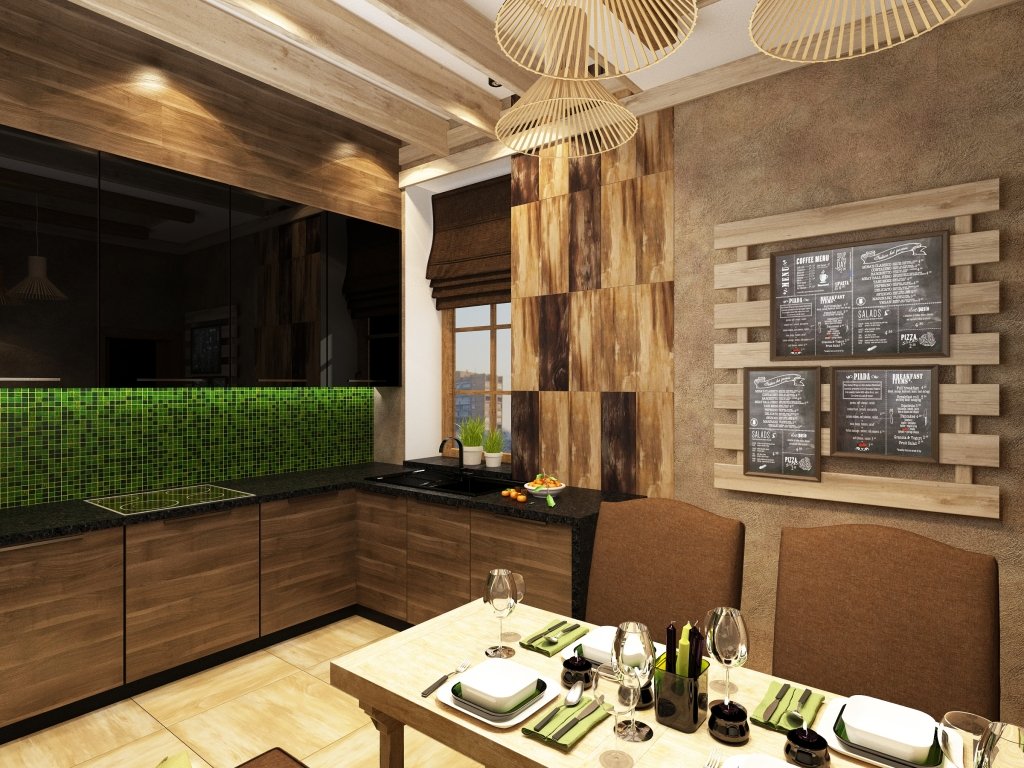 In the conditions of a big city, a cold climate and gloomy Russian architecture, I want more freedom, comfort and simplicity in the living space. The kitchen and living rooms are the most popular places in the house where the whole family and guests gather. The combination of these two rooms and the eco-style in the interior of the kitchen is a chance to create a free space for relaxation and entertainment, where you can use the vacated space with greater benefit. And a great opportunity to embody the eco-loft style - a trend of the last few seasons.