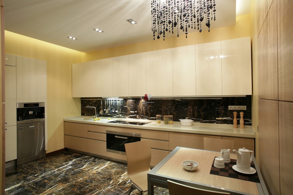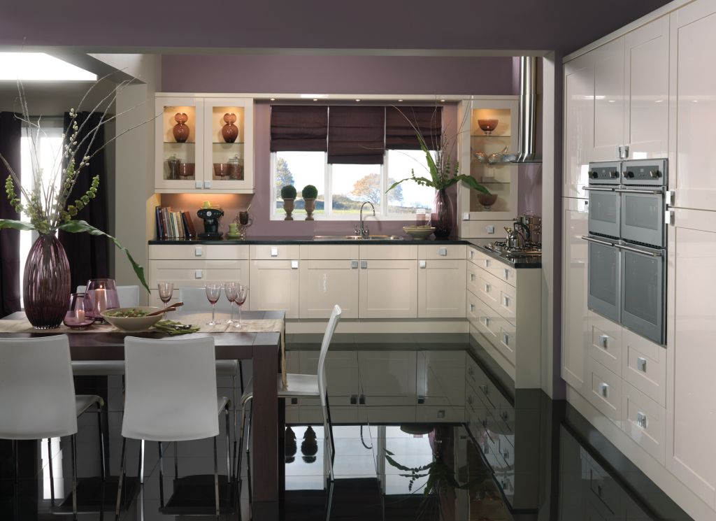 If the floor in the kitchen is glossy, then the furniture must be installed with a glossy sheen.