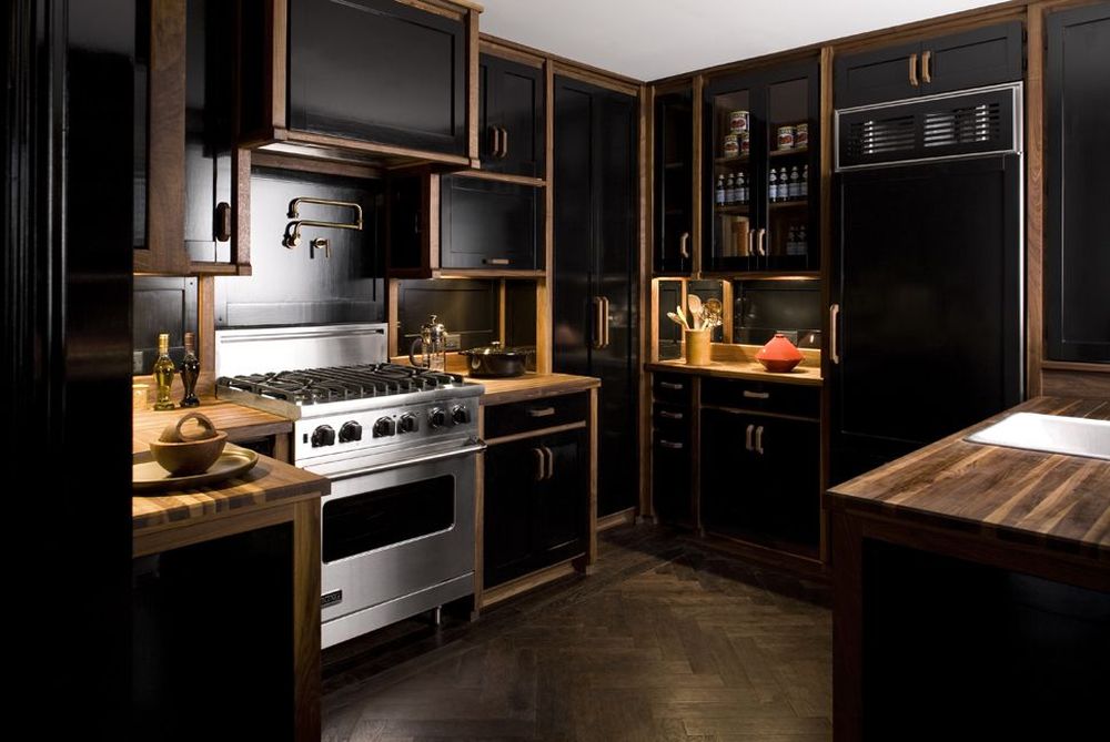 For a kitchen that is too small, this decision is psychologically unsuccessful. The hue may not be completely black, but, for example, the color “dark chocolate” or violet-gray.
