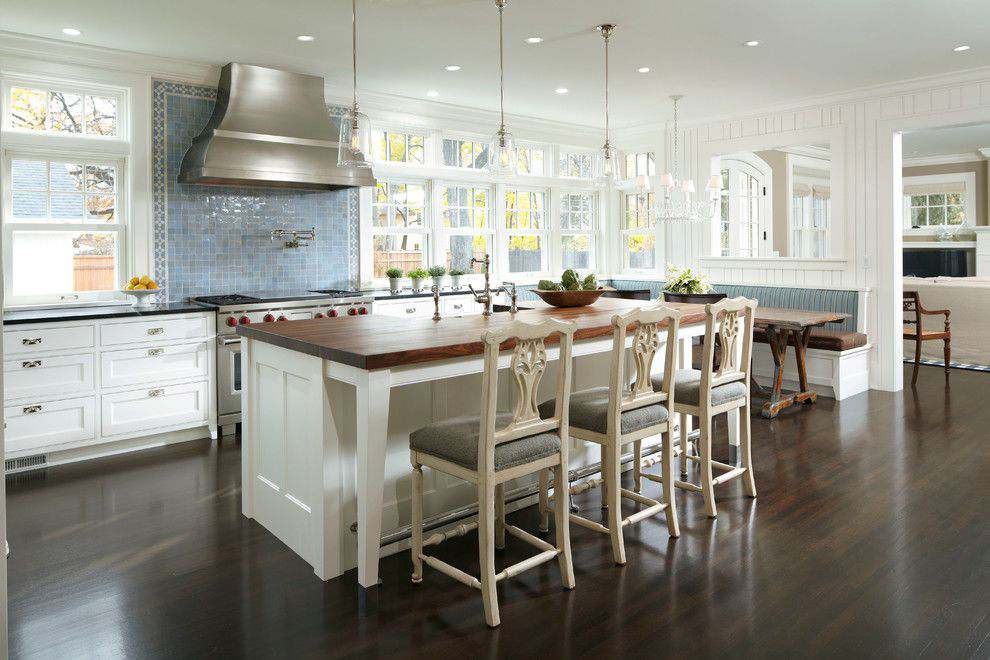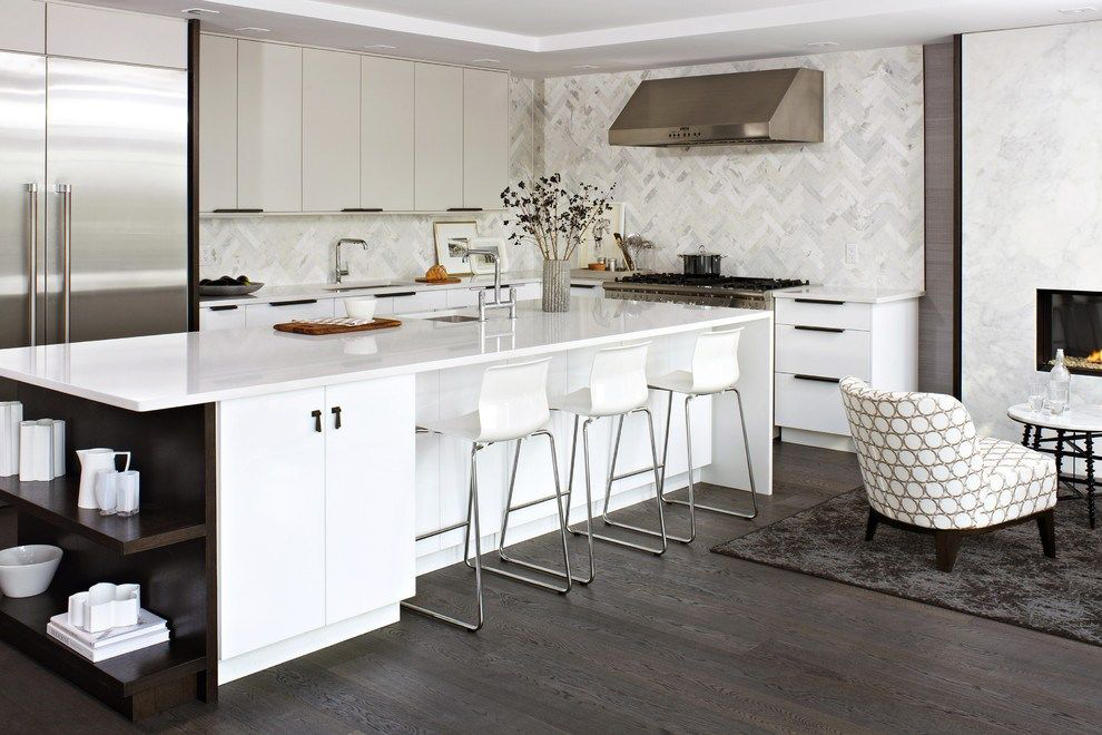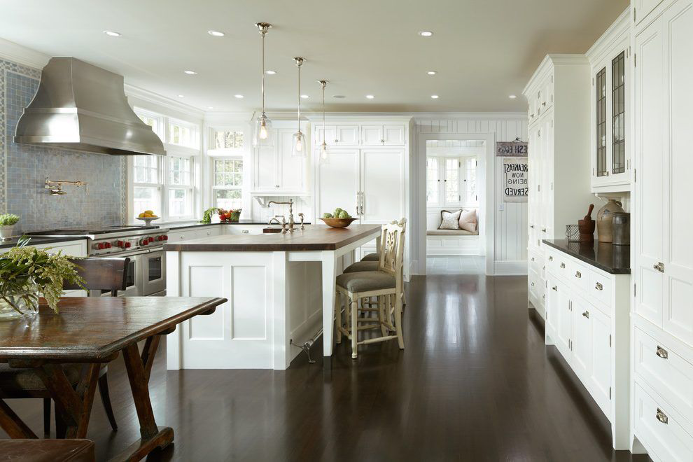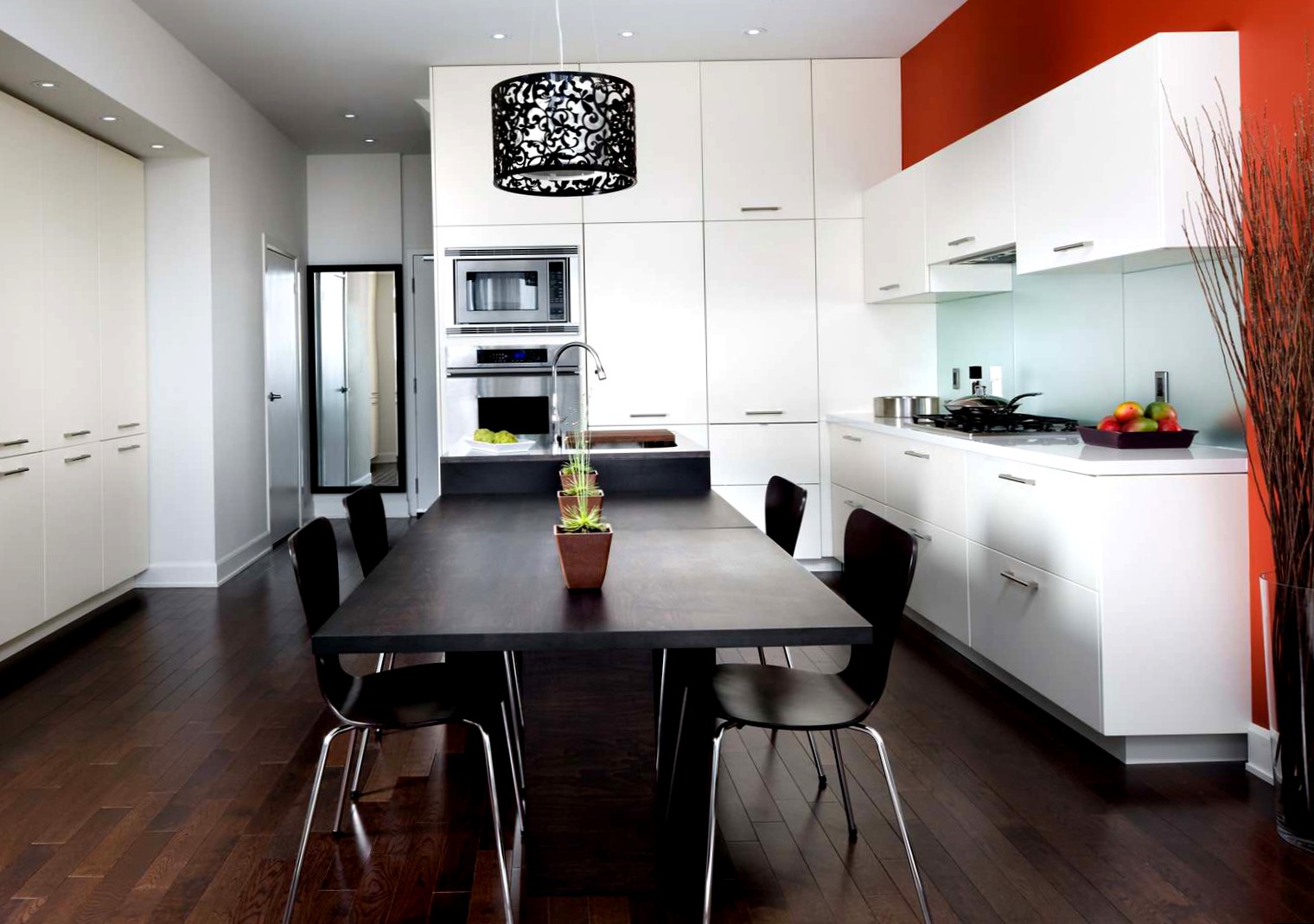 If you chose dark floors for the kitchen, be aware that they will bring respectability and high cost to the interior.
