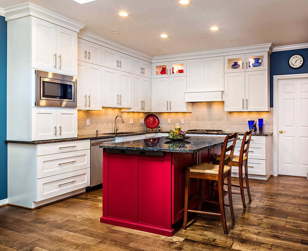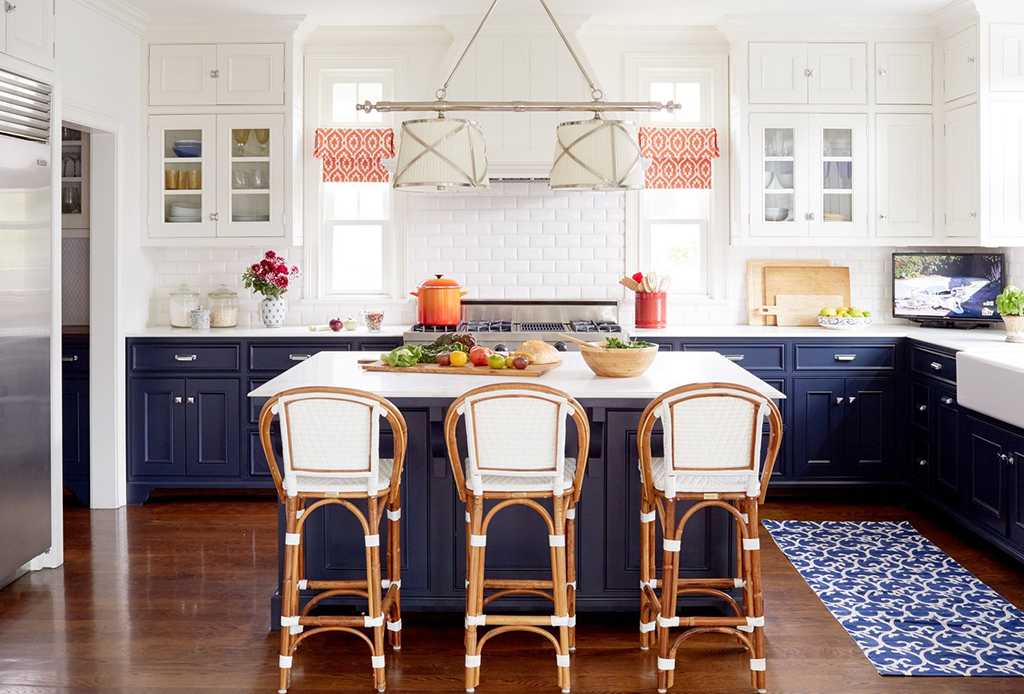 This property - visually adjusting the size of the room - will be an advantage or a disadvantage depending on the area of the kitchen and design tasks. When dividing into areas of large rooms - for example, kitchens combined with the dining room - the color helps to highlight the most important "islands", one or more. Often they even differ in design and style.