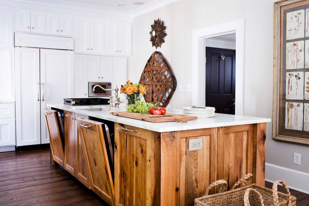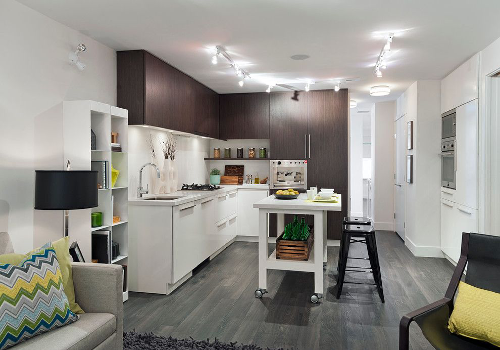 In the process of cooking, it often happens that some piece flies into an inaccessible corner.This means that the furniture should be located so that hard-to-reach corners are as small as possible.