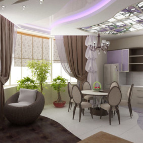 - Combining a balcony with a kitchen for the purpose of arranging additional territory for recreation and leisure