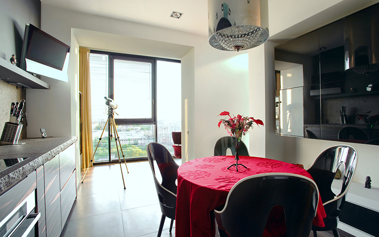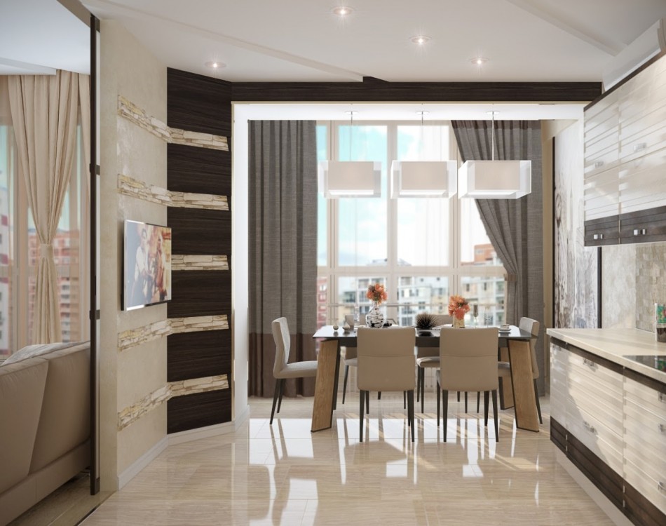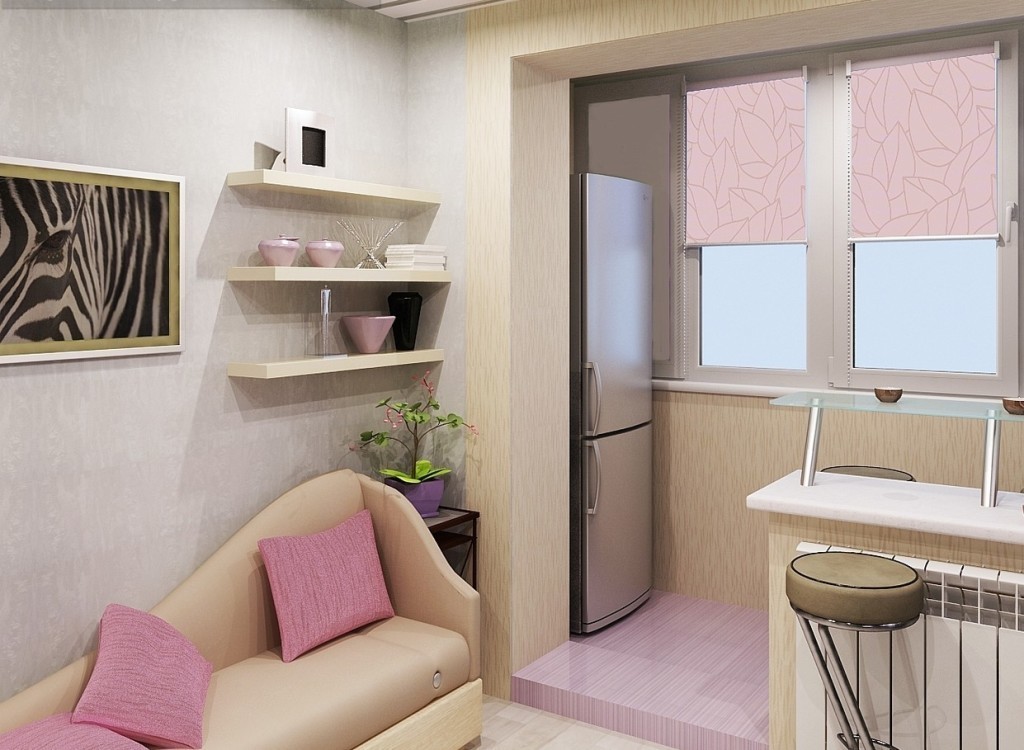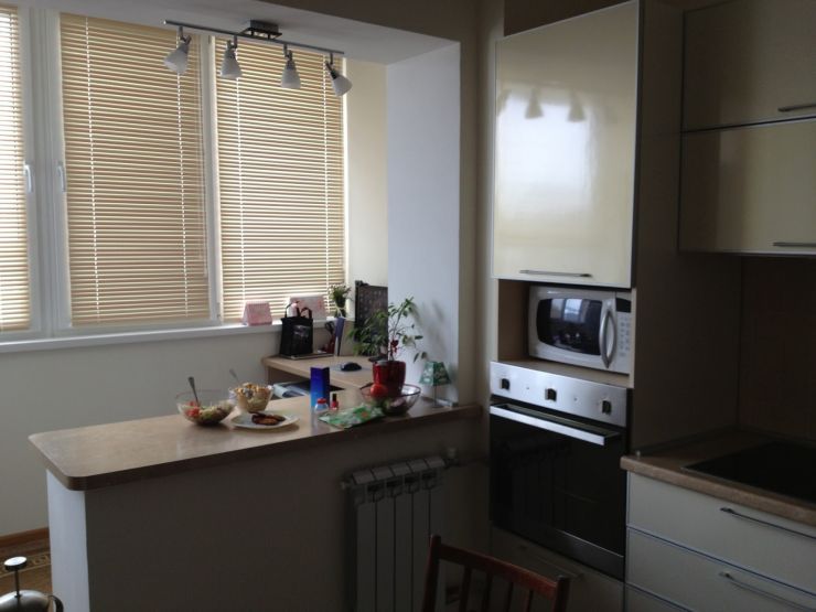 - Combining a balcony with a kitchen for the purpose of arranging additional territory for recreation and leisure