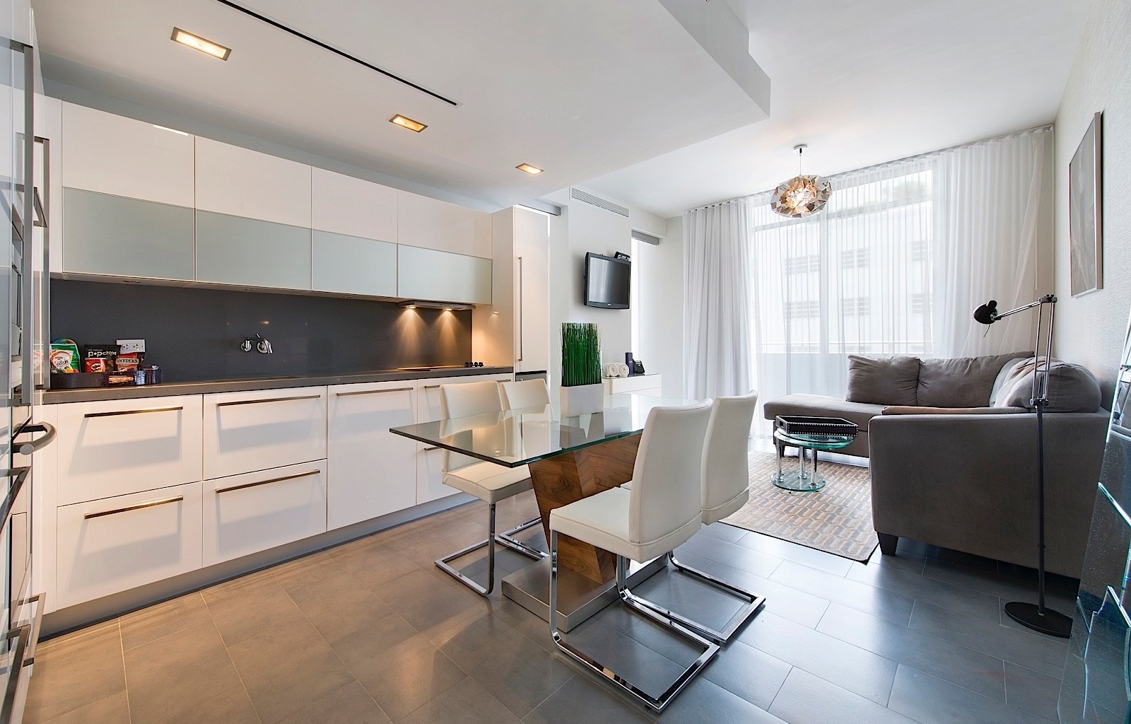 The kitchen, which has direct access to the balcony, has hidden functionality.