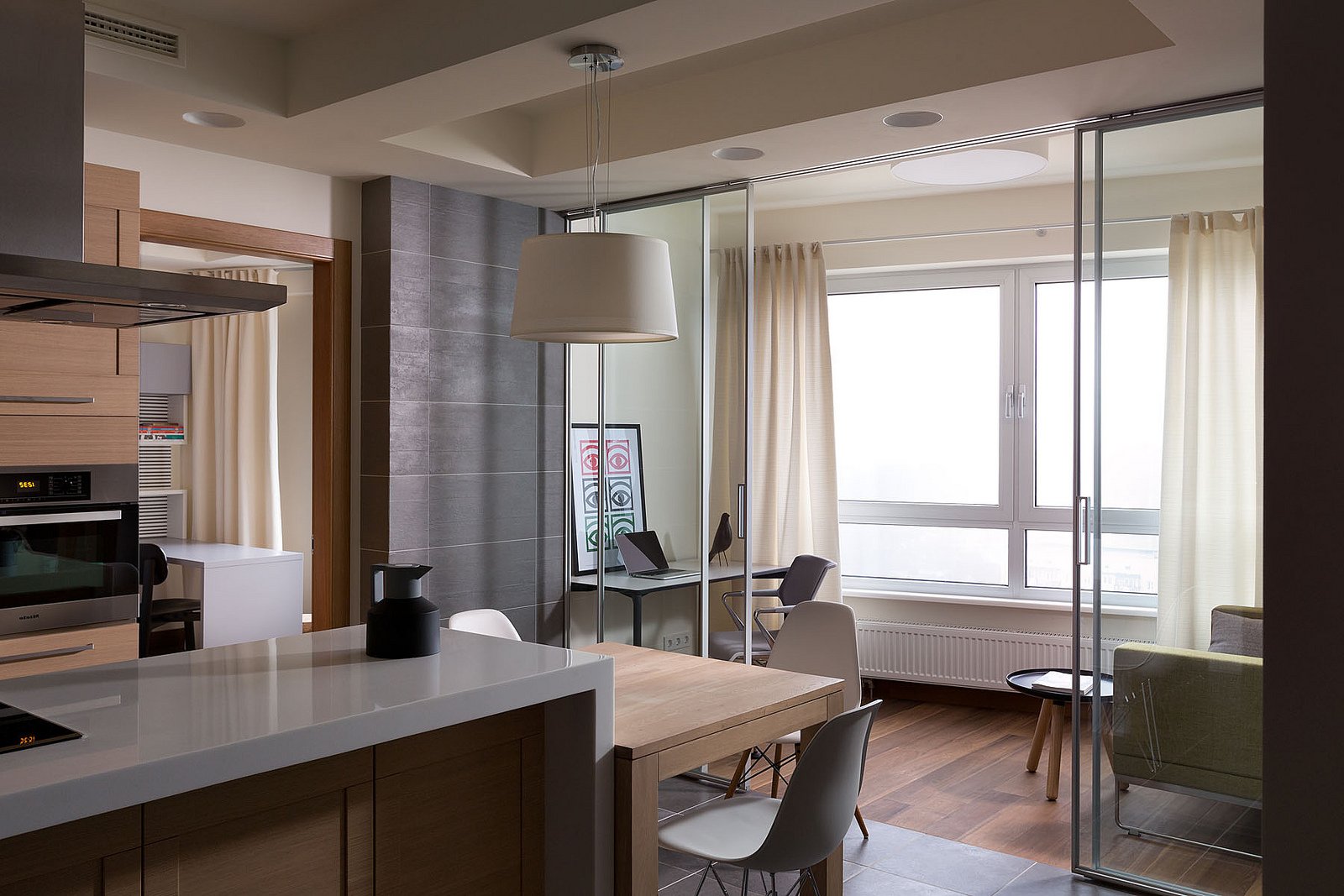 In the future, it can become a bar, an additional work surface or just a stand for flowers or an aquarium.