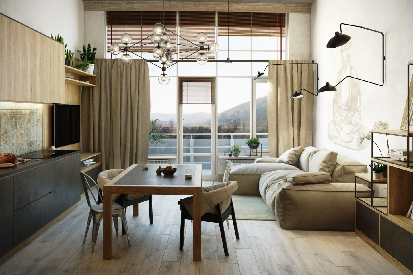 Kitchen-living room with a balcony