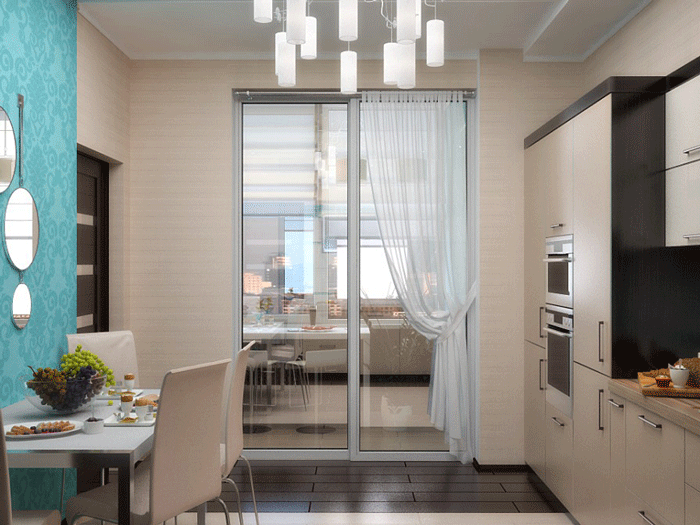 There are several types of joining the balcony to the kitchen: