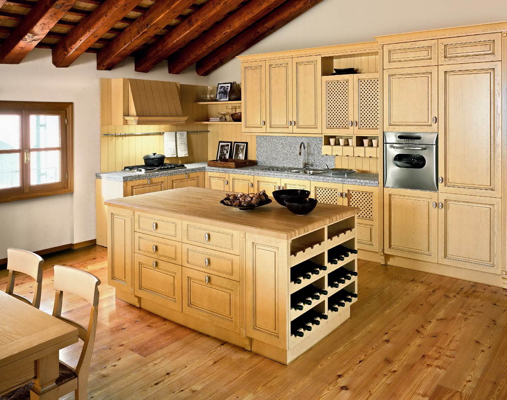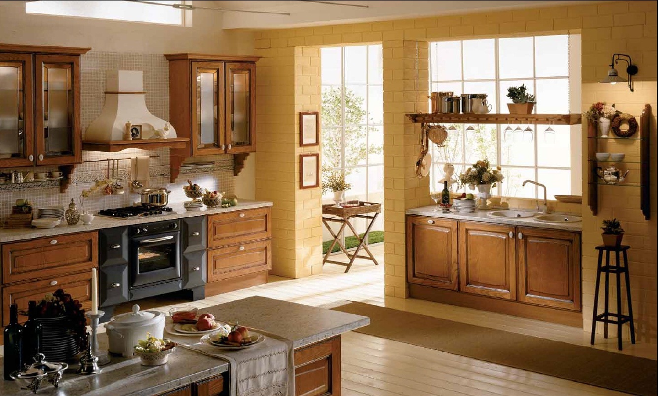 The interior of the Italian-style kitchen is based on the maximum use of natural materials