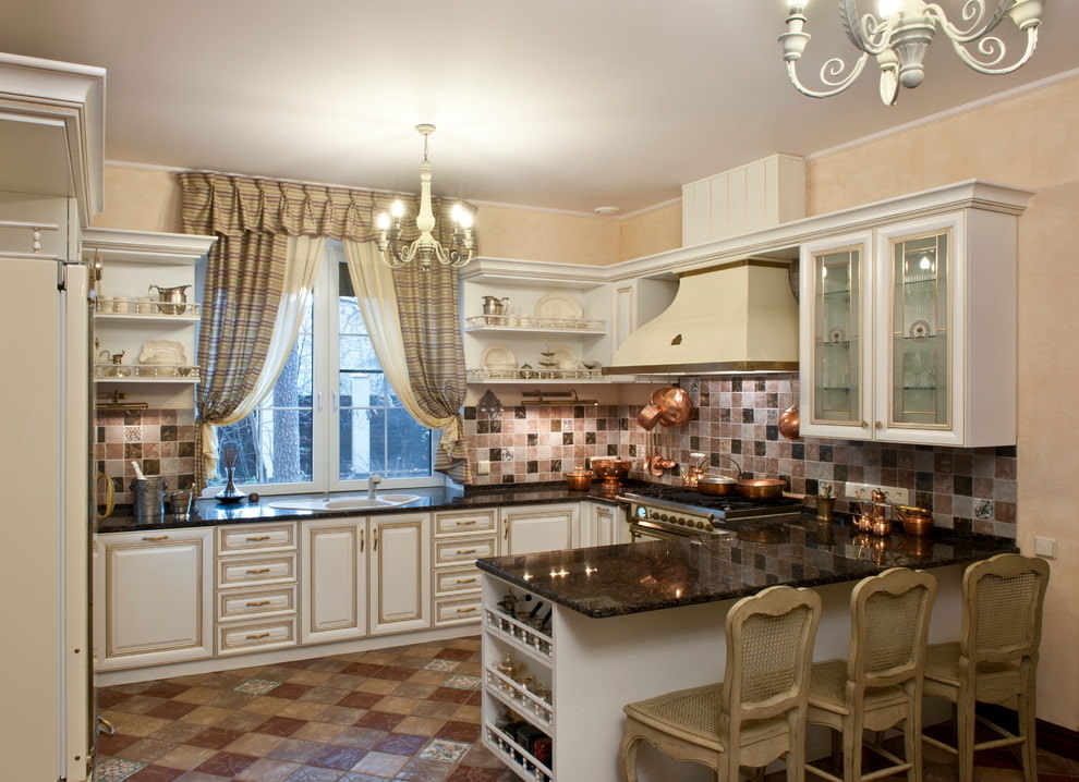 Textile inserts on the walls, as well as genuine leather or metal, will look great. Adding the latter, it is worth remembering that there should be no shiny and polished surfaces in the Italian-style kitchen, so it is better to choose frosted or dark elements and not go too far with them.
