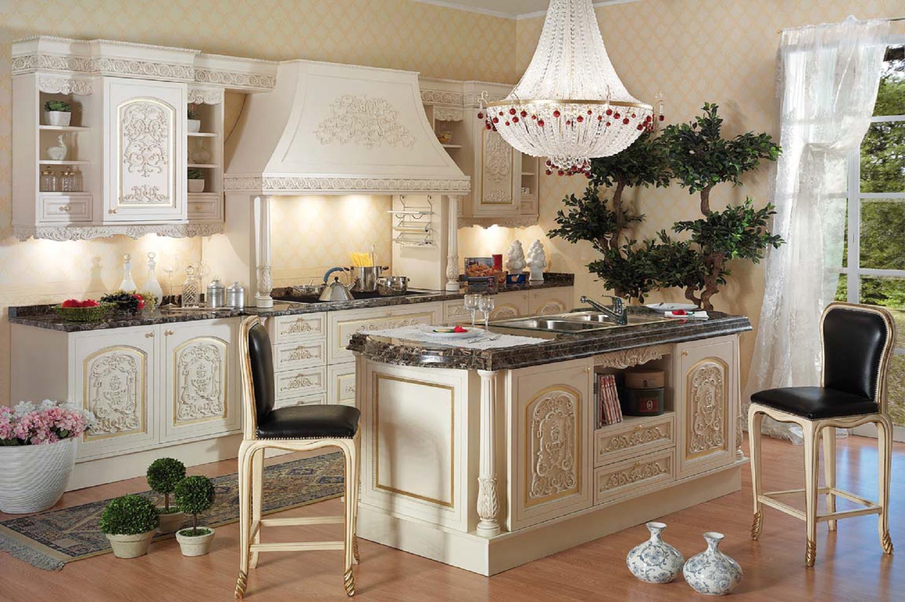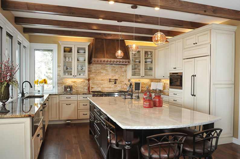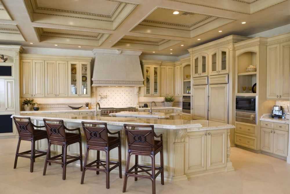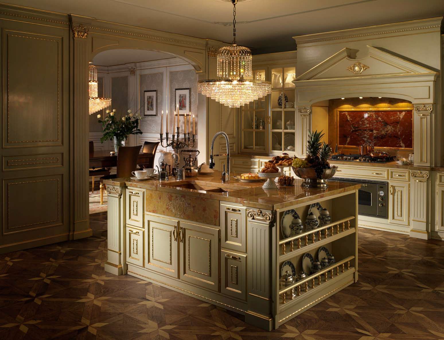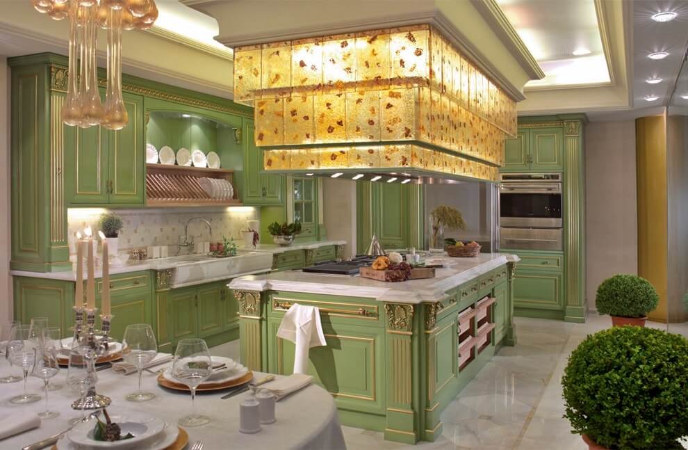 Spacious kitchen should be of island type made of solid wood or its high-quality imitation