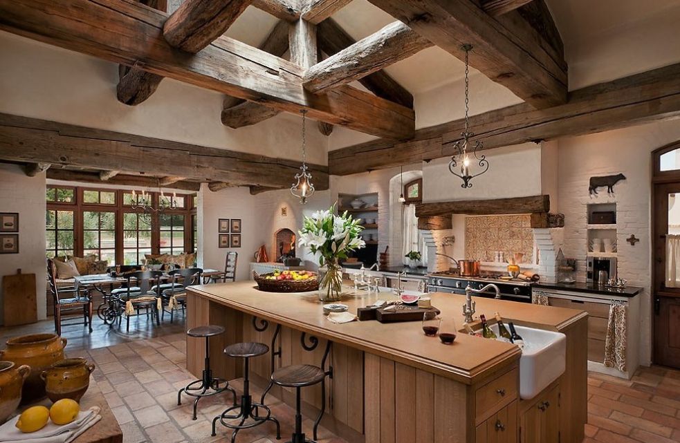 Modern manufacturers offer a large number of materials for surface finishing, which will become an imitation of natural wood and stone. However, they will not be able to convey the true Italian mood. In the Italian-style kitchen, plank floors will look great, especially if the wood texture is emphasized and pronounced.