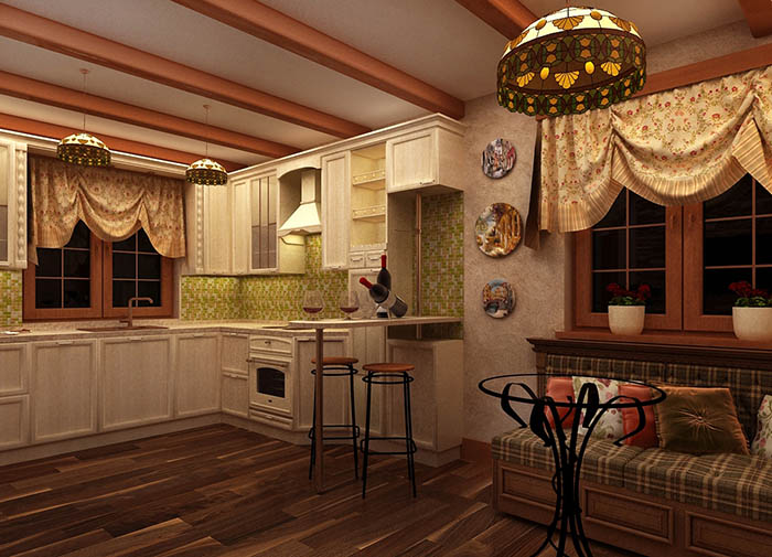 - The abundance of decorative elements and accessories. Here you can give free rein to imagination and design a room with a variety of original objects. It can be beautiful figurines, aesthetic dishes, interesting jars with spices - anything you want!