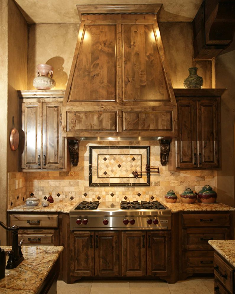 Italian style, like no other, loves natural materials and natural colors. In a prominent place is always - natural or artificial stone, metal, precious wood, natural textures and so on. All this together creates the effect of antiquity in decoration and furniture. It seems that in this kitchen at the table for decades, family members and generations gathered.
