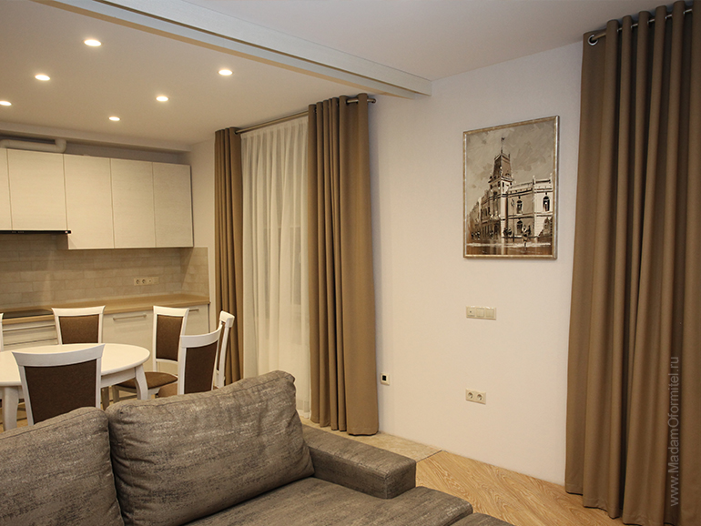 The style of the interior affects the choice of the style of the curtains, and the degree of illumination of the room affects the selection of fabric.