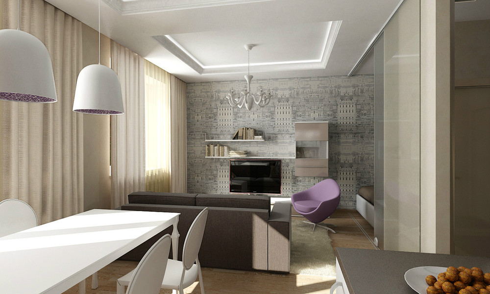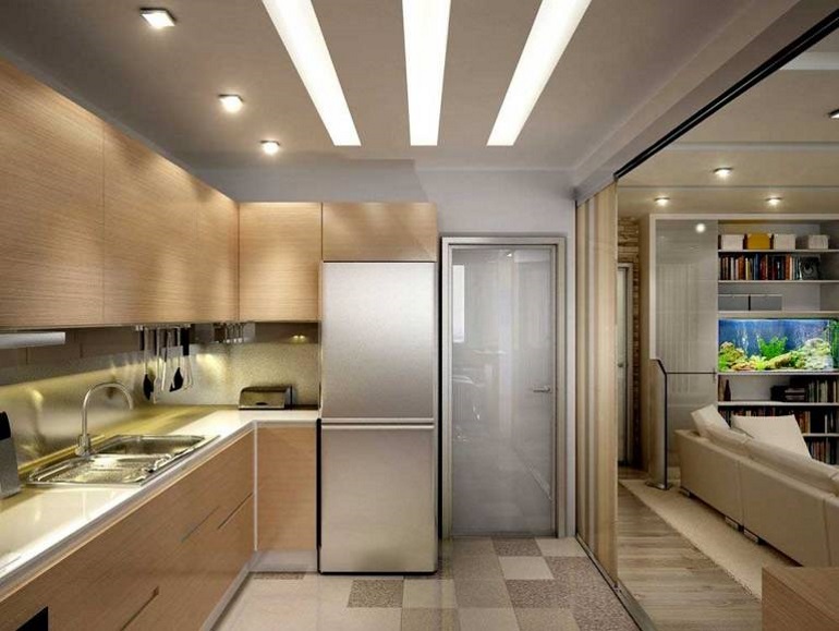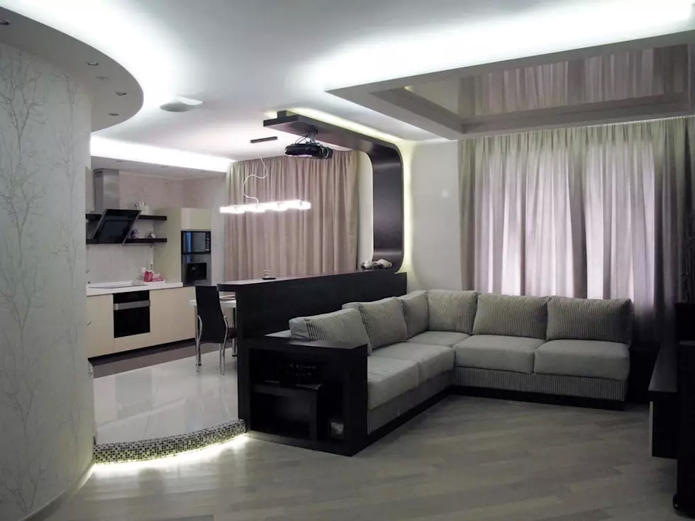 The combination of two rooms, a kitchen and a living room, has become fashionable. A small kitchen and a relatively large room of the hall allows you to make a room that is easier to arrange and make it as functional as possible.
